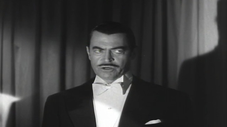 Chester Morris (Alibi 1929, The Big House 1930, Five Came Back 1939) plays the smarmy Dr. Carlo Lombardi, carnival hypnotist and prognosticator extraordinaire. Morris brings smarmy to a whole new level here, that it even makes Jack Cassidy‘s villains’ seem Christ like. Lombardi travels around rich circles impressing the affluent patrons, with his ability to regress his female hostage, oops I mean patient back in time, probing old memories of their past lives, thereby proving that reincarnation is real.