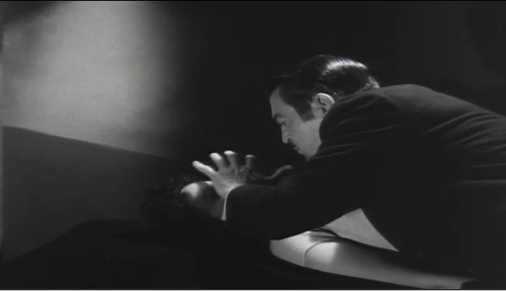 The way Lombardi keeps her in a trance evokes a type of necrophiliac behavior, but for 1956, it was enough to focus on the beautiful girl asleep on the couch under the evil magician’s control! There are suggestions, that Lombardi has been intimate with Andrea and is sexually aroused by her beauty and her vulnerability. He is an Egoist after all, and control is a big turn on for him. What’s more powerful than an unconscious subject. Just the thought of his greasy Snidely Whiplash mustache touching her lips sends my skin crawling!