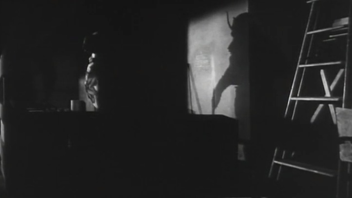 It starts out on the desolate beach at night where the mustachioed mad hypnotist Lombardi is standing in silhouette , then walking along the shore, dressed in black like a villain from a silent movie, about to tie a maiden to the train tracks. He’s staring out at the sea, a distant shape is forming in and out of the breaking tides.