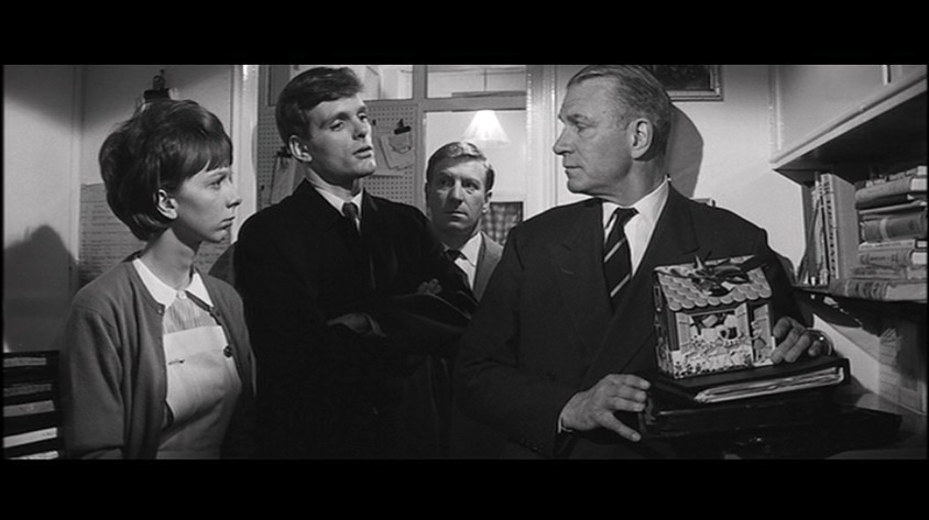 The film also stars Laurence Olivier as Superintendent Newhouse, Martita Hunt as retired head schoolmistress Ada Ford, Anna Massey as the uptight Elvira Smollett, Clive Revill as Sergeant Andrews, playwright Noel Coward as Horatio Wilson, the lewd, drunken, seedy and lecherous Landlord who is creepy and inappropriate as he carries his little dog Samantha around with him everywhere. He’s also got a wicked whip collection… one which was once owned by the ‘master himself’ the Marquis de Sade.