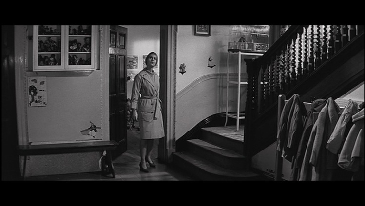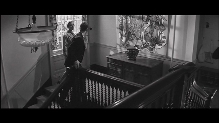 Denys Coop’s diligent camera seems to peek into corners, moving through doors and up and down those iconographic STAIRS becoming part of the film’s fretful and apprehensive rhythm. Coop uses peculiar camera angles and lights his subjects from below in order to distort the mood, and throw odd uncomfortable shadows on their faces.