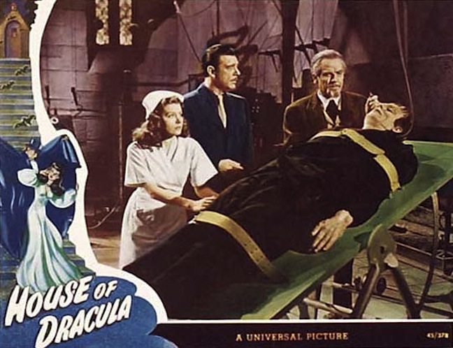 Chaney Jr. started acting as a contract player at RKO after his father died but never attained the kudos that his silent film star did. Chaney Jr worked for Universal in a number of low budget horror films. Son of Dracula 1943 & The Mummy’s Curse 1944 and reprising his role as Larry Talbot in House of Frankenstein 1944 just to mention a few.