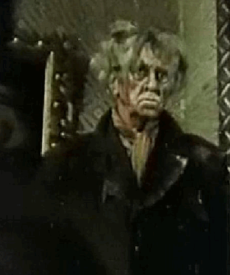 John Carradine’s character, Towman the mute newspaperman, who constantly rings his bell to grab the others’ attention, although he doesn’t utter a word, exudes a cantankerousness. Charlie Towman is killed when, after having his hands severed by the killer, he blindly stumbles into the road and is fatally run over by Jeffrey’s car.