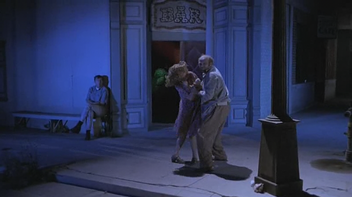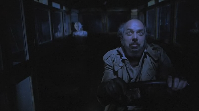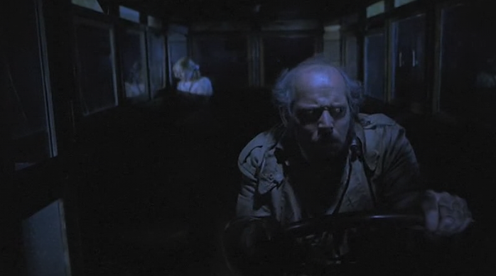“You goin’ to Astaroth- You Lila?”His voice and grubbiness make him appear like a shabbily dressed Igoresque skid row bum. The bus sputters and clanks so wonderfully illustrative of the film’s atmosphere of degeneration and disorder.