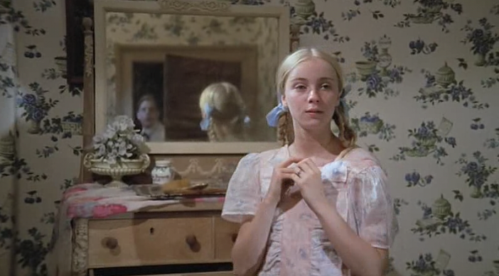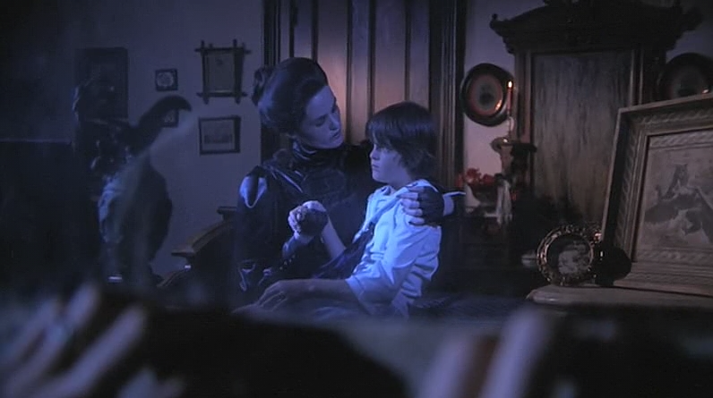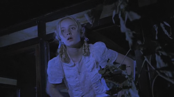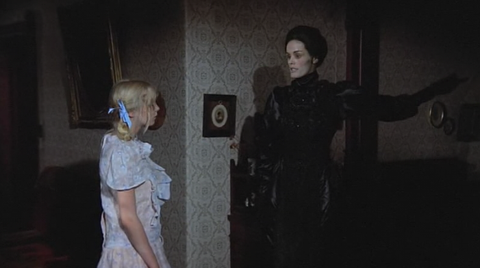 Once Grace and her father are re-united-Grace and her father set up a home at his old ranch. Our revelation, when we gaze upon Grace’s bedroom at the run-down ranch outside of town is a unique scene where Grace’s perception evolves as a warmly decorated space, the camera shows us the contrast from what she sees as an enchanted bedroom to a set piece right out of a scary episode from Rod Serling’sNight Gallery. We see the reality of what surrounds Grace, but she experiences it through her delusion, as a place that symbolizes ‘home’ with her father. The one thing she longed for since she was a tiny child in the orphanage. Speaking of which-