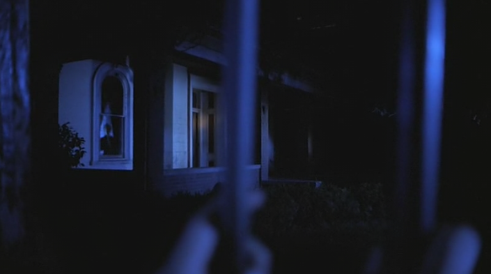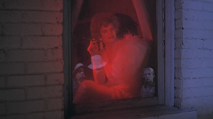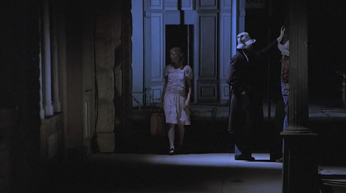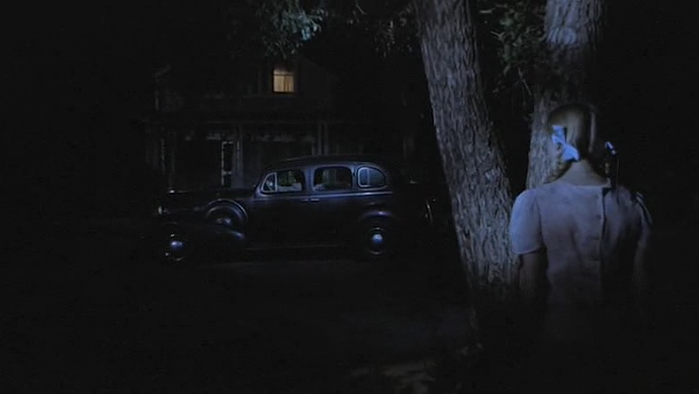 We see the backs of their heads while they talk about Lila Lee. We hear their voices but there is a sense of detachment and an unreal quality because you do not see their faces, their lips moving, or their expressions. The camera angle purposefully removes them from Lila in a way that creates a more imaginary feel to the scene. It is her crossing over the threshold from being the singin’ angel in the choir to passing over on into the borderland of the netherworld of Astaroth.