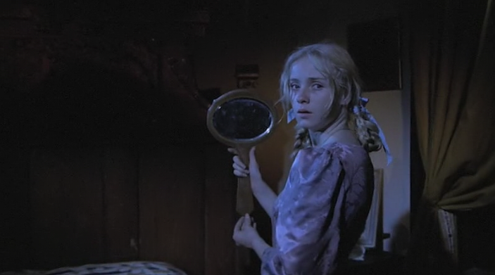 The visual effects were done by Byrd Holland (Rabid 1977, The Baby 1973) costumes and wardrobe by Jodie Lynn Tillen(Angels Hard as They Come 1971, Switchblade Sisters 1975) Tillen dresses Lila Lee, her hair done up with pale blue ribbon and black patent leather shoes on her journey as if she were Alicefrom Lewis Carroll’s story. For all the modern CGI effects in contemporary film- Holland gives special credit to his lab assistant Doug White. I prefer the look of the 70s, and as Byrd Holland said these were the only tools they had in their make-up kit. I think the simplicity is so effective it taps more into the primal…