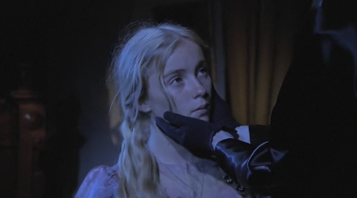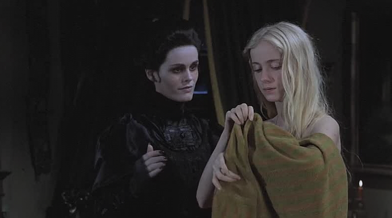 Lemora acts as if she is a protector and an amorous admirer who has found a new young girl to reign with her. The sallow Lemora speaks sagely to Lila Lee, giving her comforts laced with a sensually sapphic tone. Lemora’s unearthly black nails caress the lily-white flesh of the virginal Lila Lee. Like two lost souls they exist to tempt each other-
