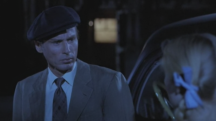 During her flight, she encounters various salacious rural folk. She sneaks into the back of a car in order to get to the bus station. Hiding down on the floor of the car she overhears the conversation between The Young Man and his girlfriend.