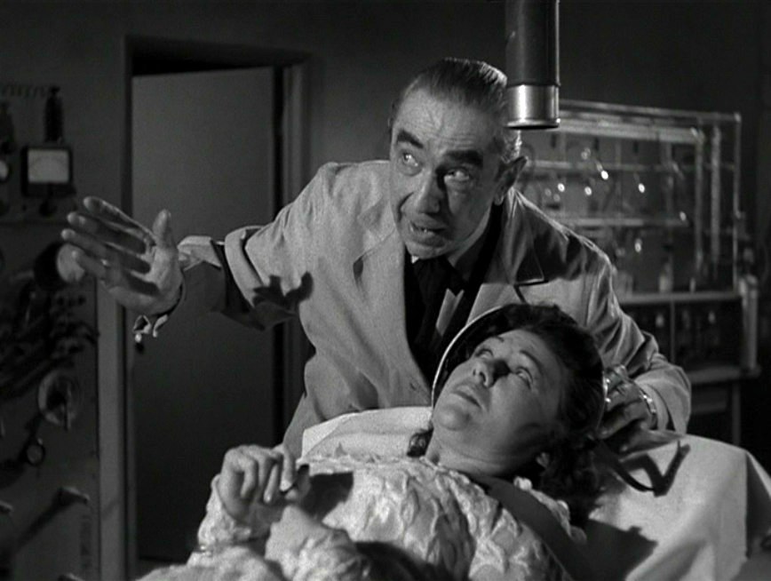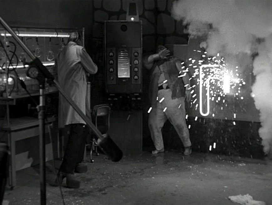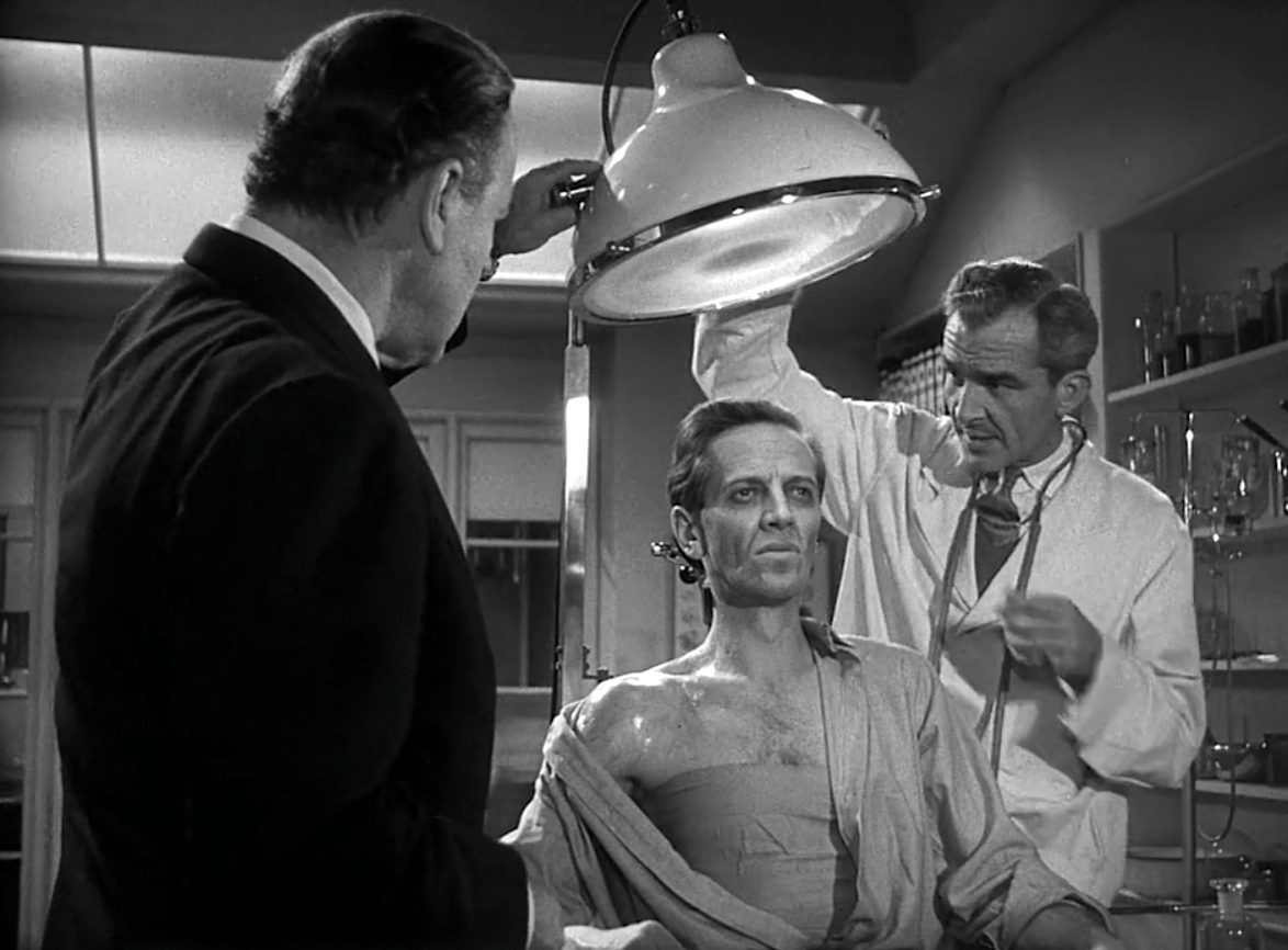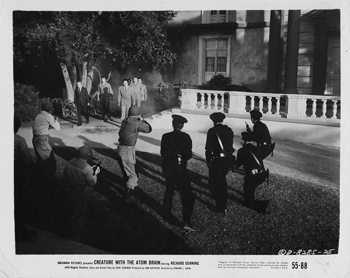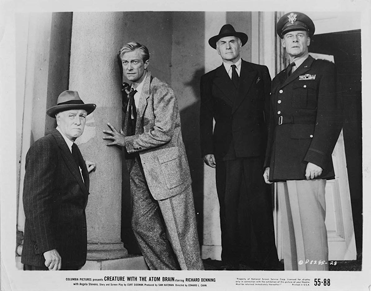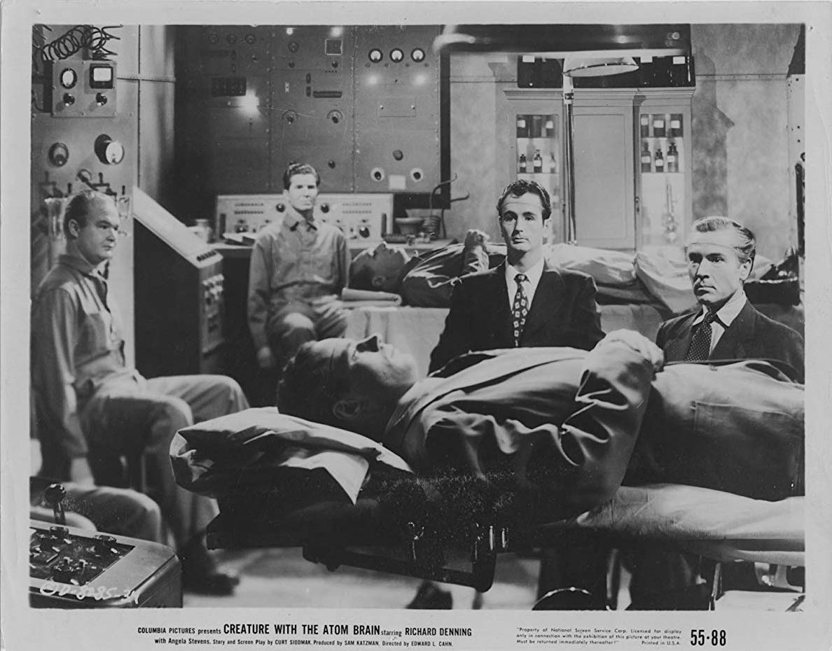 Dr. Chet Walker (Richard Denning), who is a doctor working for the police, is called in to investigate the murder. Walker discovers that the Hulk was atomic-powered. Soon he learns that an exiled mobster Frank Buchanan (Michael Granger) has returned to the States and is working with an ex-Nazi scientist Dr. Wilhelm Steigg (Gregory Gaye) to create radio-controlled atomic zombies who will carry out his plot of revenge against those responsible for betraying him. Steigg removes the tops of corpses’ skulls, removes parts of their brains, and replaces them with what Bill Warren refers to as a “glittering sponge.” Once resurrected from the dead, these atomic-powered zombies exact their revenge by breaking their enemies’ backs.