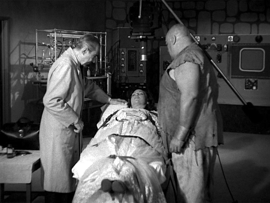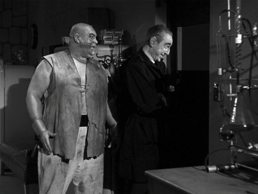 A mad doctor, Professor Vornoff, lives in his hideaway in the swamp lands in a decrepit house with his assistant, the massive brute called Lobo (Tor Johnson). “Don’t be afraid of Lobo; he’s as gentle as a kitten.” Tor Johnson also played a character named Lobo, who was mad scientist John Carradine’s servant in The Unearthly (1957).