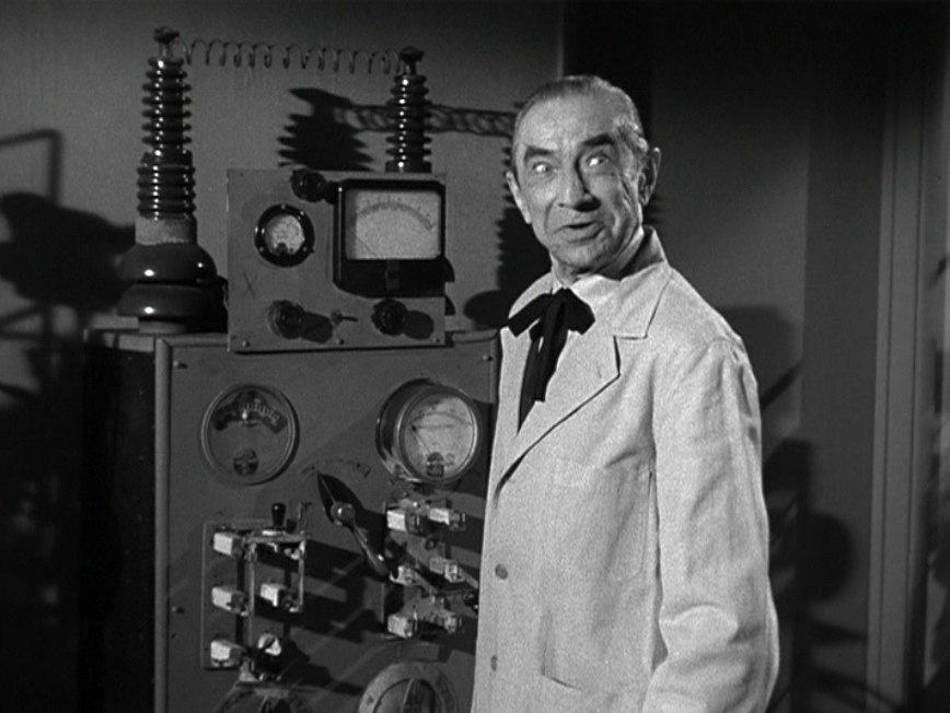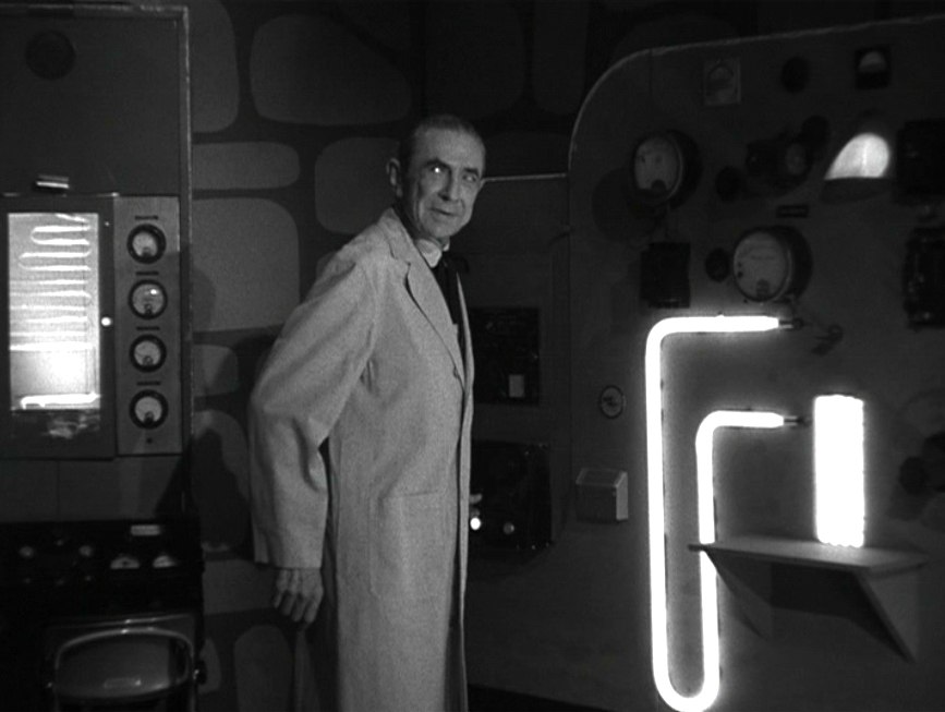 Dr. Vornoff captures Janet and declares that he will make her a Bride of the Atom! which was the original title of the picture. Of course, Dick comes looking for his girl, but Lobo trounces him. But before Vornoff can throw the switch, Lobo remembers how Vornoff used to beat him with a whip, and releases Janet, turning the ray on the evil genius instead. Vornoff becomes an atomic-powered fiend, taking out Lobo and carrying Janet off to the swamp, until Dick throws a boulder at him and he stumbles into the pond and succumbs to the octopus. A bolt of Odin-like lightning strikes both, and they explode into swamp particles and a mushroom cloud. The police captain played by Harvey Dunn exclaims prophetically and pathetically as all are apt to do in an Ed Wood production, “He meddled in God’s domain.”