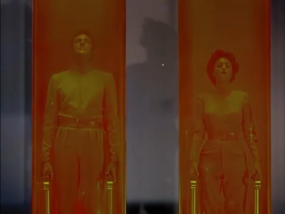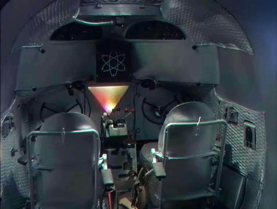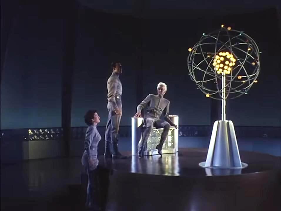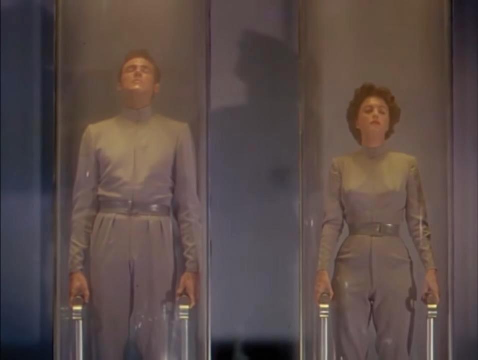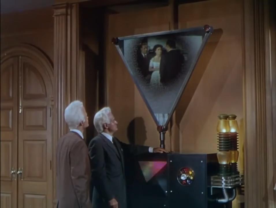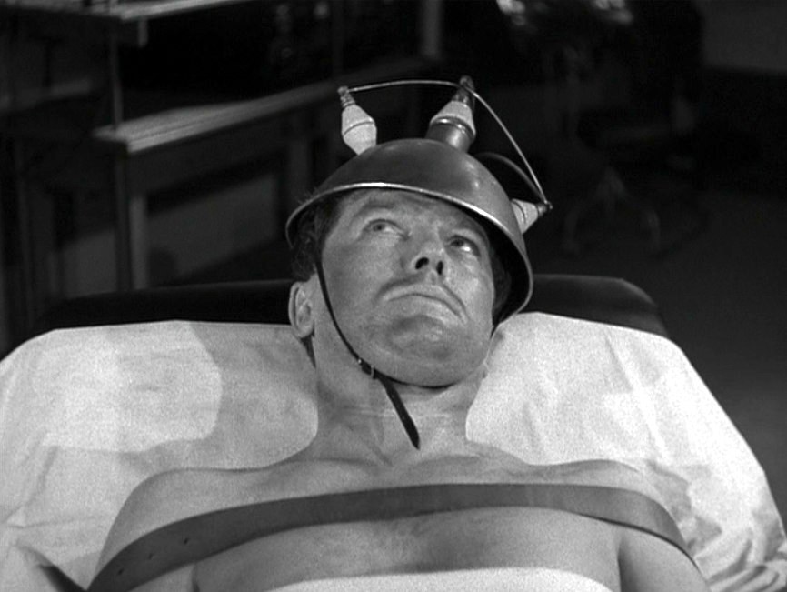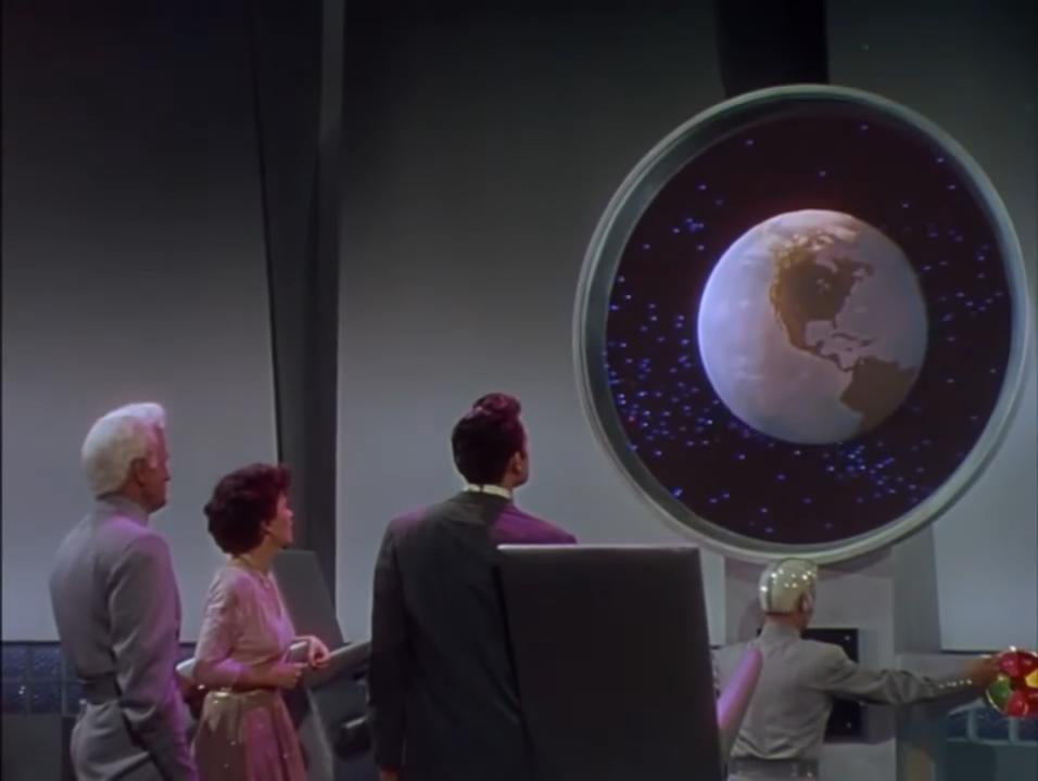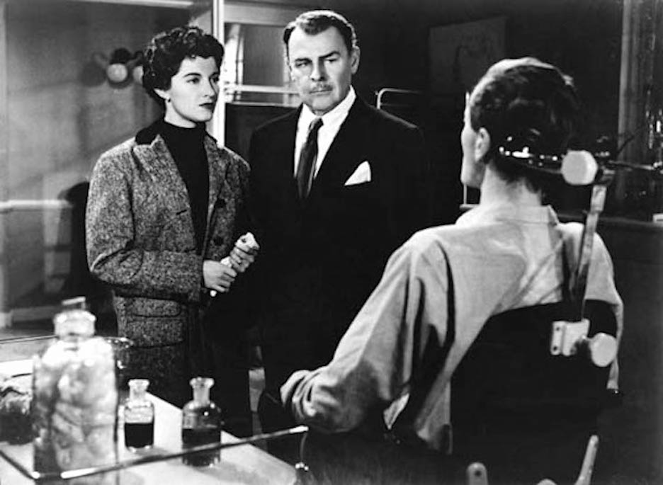 The story starts out with a nuclear scientist, Cal Meacham (Rex Reason), who is sent a mysterious electronics catalogue of schematics, which is an instruction on how to build an ‘interociter’. Before that, Meacham is saved in his jet by an inexplicable green glowing light. Once constructed, the piece of equipment turns out to be a three-dimensional triangular television screen on which the image of Exeter (Jeff Morrow) appears. Exeter is an alien with a really pronounced forehead and icy white hair and brows. Cal is informed by Exeter that he has passed the intelligence test and is convinced to join the other nuclear scientists from all over the world who were given the same challenge. The ‘interociter’ is an advanced invention that piques scientist Cal Meacham’s curiosity.