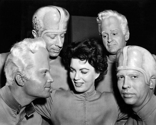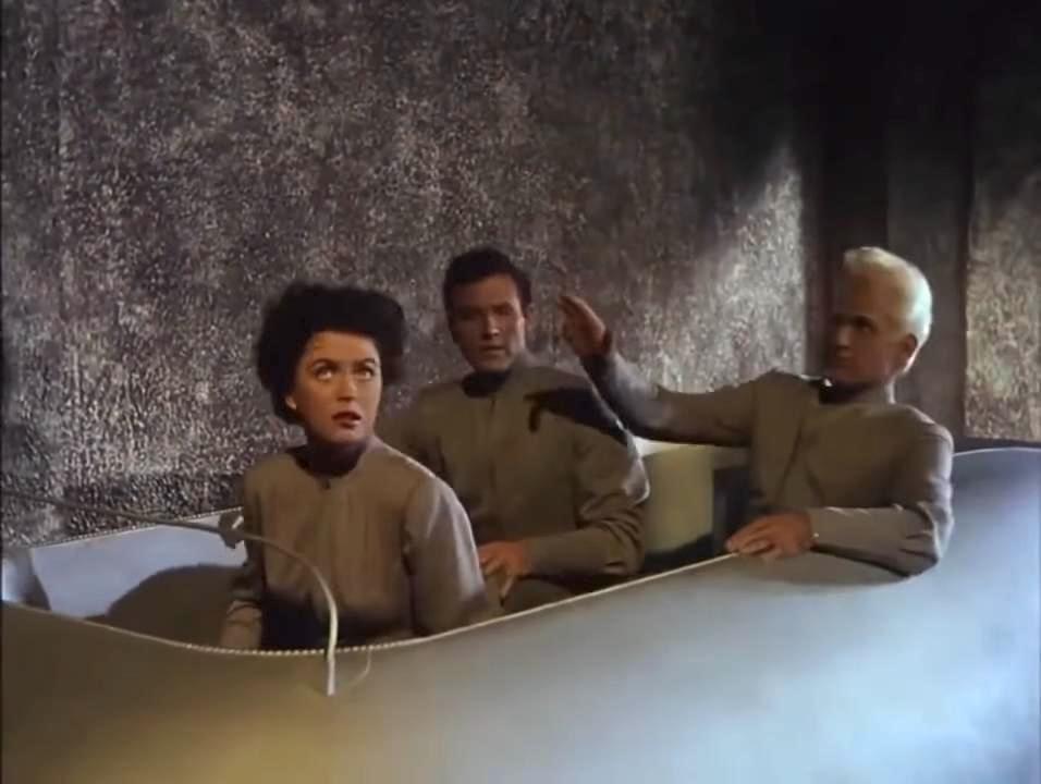 This George Pal colorful science fiction eye candy stars Jeff Morrow as Exeter, Faith Domergue (Where Danger Lives 1950, Vendetta 1950, This is My Love 1954, It Came from Beneath the Sea 1955, Cult of the Cobra 1955, The Atomic Man 1955, House of Seven Corpses 1974, How Evil, My Sister 1974) as Dr. Ruth Adams, Rex Reason as Dr. Cal Meacham, Lance Fuller as Brack, Russell Johnson as Dr. Steve Carlson, Douglas Spencer as The Monitor, Richard Deacon as the pilot, Eddie Parker and Regis Oarton as The Mutants and Orangey-the Neutron cat!