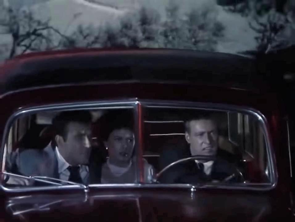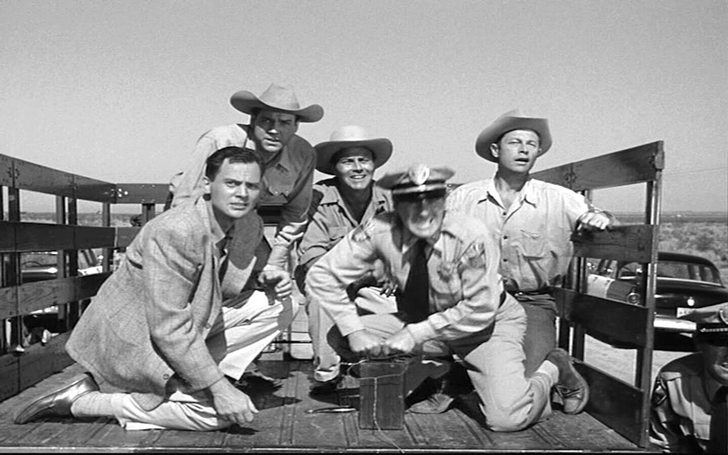 Oddly enough, whatever is affecting God’s simple creatures has also taken control of Allan’s mute handyman Carl (Leonard Tarver), who was Allan’s commanding officer during WWII, wounded during the war because of a mistake he made, and Allan feels responsible for what Carl/has lost a portion of his brain. He is what his nasty wife calls the poor mute. Carl is lured by whatever has piloted the spaceship, most likely because he is most impressionable due to his brain injury. Dick Sargent (yes! the second Darrin Stephens), who plays Sandy’s boyfriend, is attacked by Carl, who then lumbers off into the desert.