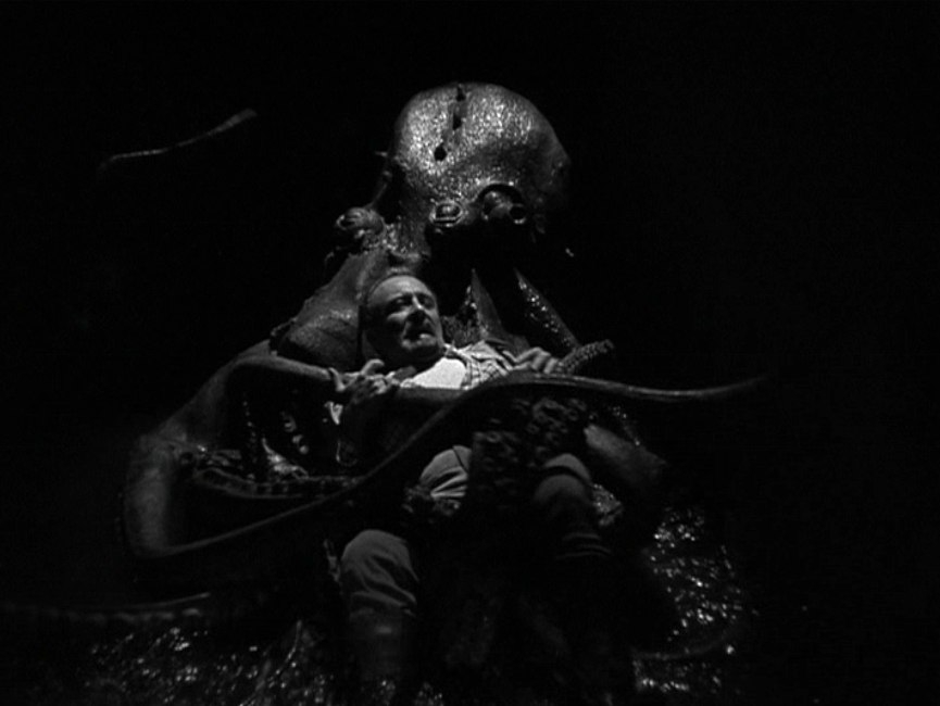 The film uses both stock footage of a real octopus and a fake, rubber octopus in scenes where “the monster” interacts with actors. It is widely believed this is a prop from the film Wake of the Red Witch (1948). Contradictory accounts claim that Edward D. Wood Jr. either stole or rented the prop from Republic Pictures, which produced the earlier film.