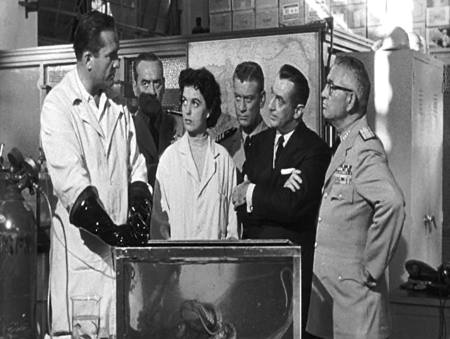 Starring Kenneth Tobey as atomic submarine Cmdr. Pete Mathews, Faith Domergue as Prof. Lesley Joyce, Donald Curtis as Dr. John Carter, Ian Keith as Adm. Burns.