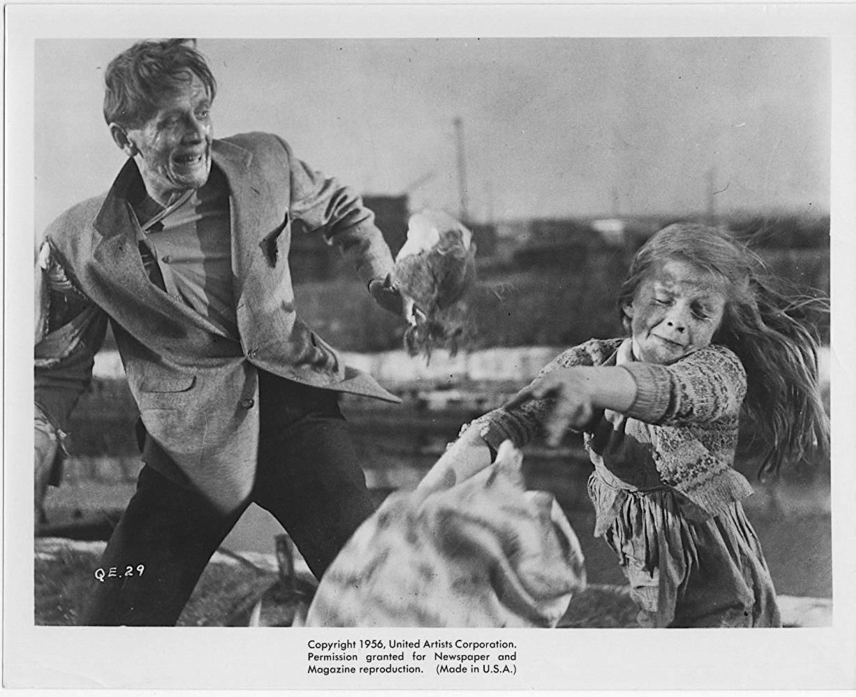 Then black birds attack Allan, a docile old milking cow that tramples their neighbor Ben (Chester Conklin) then wanders onto Allan’s ranch and must be shot before it stomps Allan to death. And yes even chickens become menacing when they assail Carol in fury of clucking madness! Some force is causing the animals to go berserk… Later birds fly into the electrical box and cut off the ranch’s source of power.