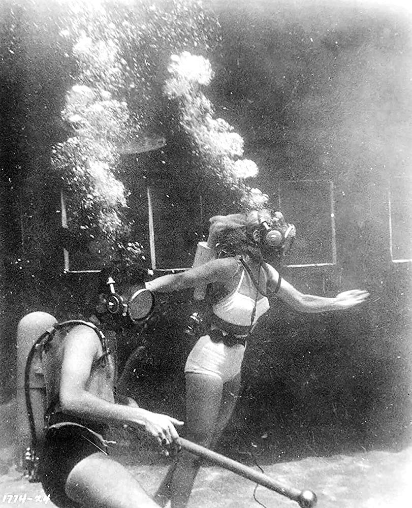 Much of Revenge Of The Creature was filmed on location at the Marineland of Florida oceanarium. The actors filmed in the water during the tank scenes, were required to swim with its real-life underwater inhabitants, including sharks, eels, barracudas, and more. Despite the close proximity to ocean predators, the only incident was that of a sea turtle biting off the prosthetic foot of Ricou Browning’s Creature costume.