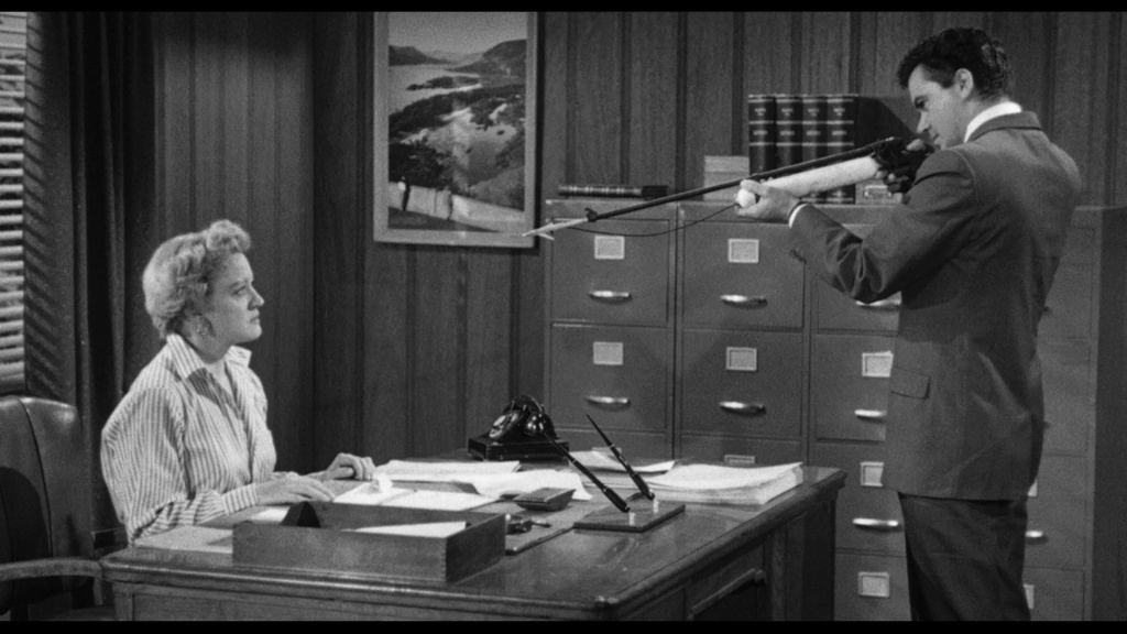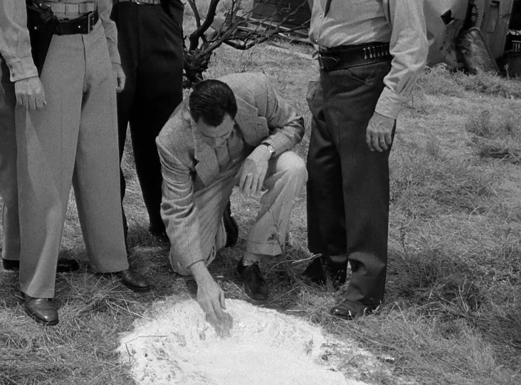 Part of what makes Jack Arnold’s stark simplicity come across as eerie and alienating is his preferred venue of the isolating landscape of the desert. Consider some of his other similar atmospheric works that feel bleak and desolate like, It Came from Outer Space 1953, The Tattered Dress 1957, and Monster on the Campus 1958.