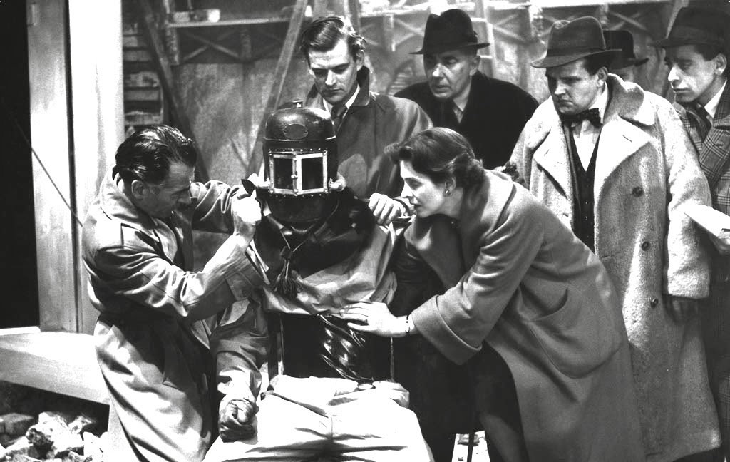 A man (Peter Arne ) is fished out of the Thames, shot in the back, and the X-rays show that he is radioactive and projects a glowing aura around his body. The man dies on the table and is clinically dead for over 7 seconds, when they perform surgery to remove the bullet. American reporter Mike Delaney (Gene Nelson) decides to interview the man who bears a striking resemblance to Dr. Stephen Rayner, who is very cryptic about what happened to him. Dr. Rayner, whose face is all bandaged up, is, however, in his laboratory working on an artificial chemical element of atomic number 74, the hard steel-gray metal with a very high melting point. Delaney and photographer girlfriend Jill Rabowski (the intoxicatingly dark-eyed Faith Domergue) are curious about what is going on and begin to investigate. While the strange man in the hospital continues to act mysteriously, Delaney’s investigation leads him to Emmanuel Vasquo (Vic Perry), who heads an organization in South America that produces Tungsten steel.