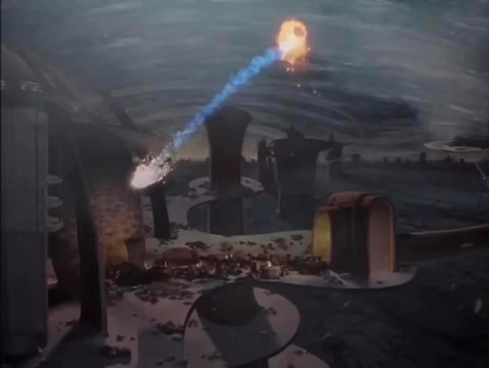 From what I’ve read, the second half of the film deviates from Jones’ novel. Metaluna is at war with the planet Zahgon. The Metalunians needed the atomic scientists to help them figure out a way to reinforce their safety shield that surrounds their planet, as they are being inundated with meteors hurled at them from the Zahgons, forcing them to build their towers and cities underground. Once Exeter returns to Metaluna with Cal and Ruth, it is too late, and the planet’s shield has already begun to crumble. The Monitor (Douglas Spencer) still wants Exeter to brainwash the two Earth scientists. The philosophical question comes into play, though we are not privy to the conflict between the two interplanetary races, Earth’s scientists are being forced to save Metaluna, and a civilization they know nothing about.