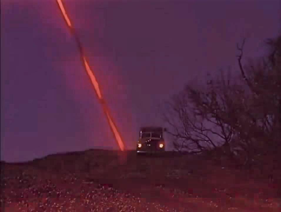Steven Carlson is zapped by red rays that appear out of the surreal sky, and while Cal and Ruth try to take off in the plane, it is drawn up within a green beam into a hovering flying saucer commanded by Exeter.