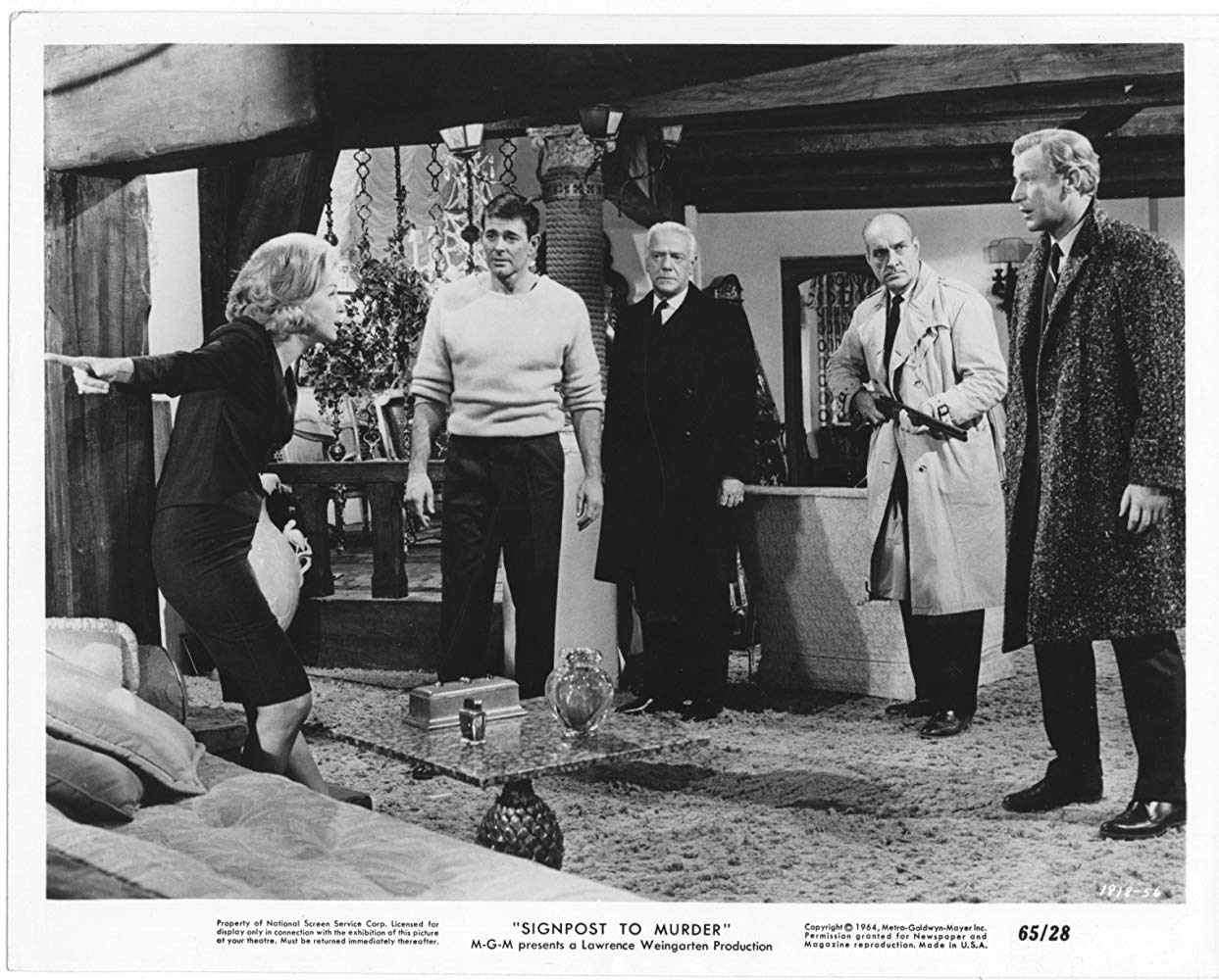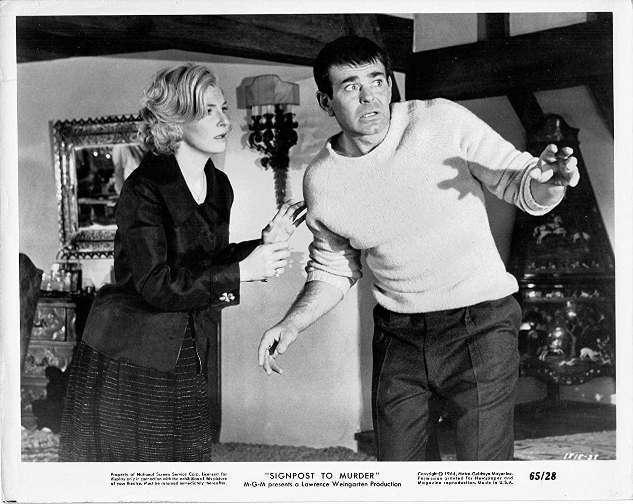 In 1965, he appeared in the director George Englund’s film noir Signpost to Murder, co-starring Joanne Woodward. Signpost to Murder is perhaps one of Stuart Whitman’s most compelling performances. He plays Alex Forrester, an escaped patient from an asylum, who takes refuge in Molly Thomas’ (Woodward) house and has secrets of her own. This contemplative thriller with twists is an incredibly underrated psychological thriller and deserves more attention paid to it for its narrative precision. There is an evocative score by master composer Lyn Murray that underlines the moody discord of the plot. Whitman is superb as the desperate man trying to free himself from being labeled insane, culminating in the emotional eruption of violence. “What a terrible way to live out the one life I have. Shut up. Shut off. Forever lost.”