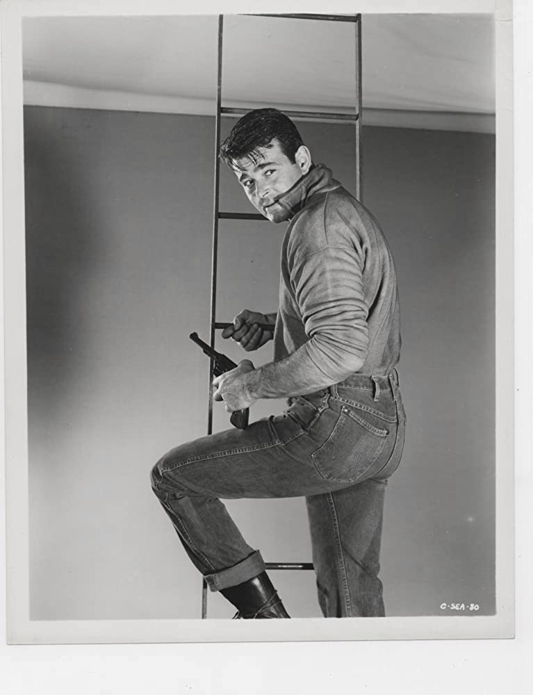 According to Whitman, he got MGM to hire his friend Broderick Crawford with the condition that he remain sober during the shooting. The film is a maritime thriller about the captain of a cargo ship who faces a deadly mutiny at sea. When Captain Edwin Rummill (played by James Mason) takes command, Henry Scott (Broderick Crawford) and his accomplices scheme to incite chaos and murder most of the crew in order to claim the ship’s cargo and split the profits of the large salvage reward. The film centers on tense confrontations, violence, and suspense as the captain and loyal crew struggle to thwart the mutineers’ lethal plan. Whitman plays the tough and menacing Leroy Martin, one of the mutineers aboard the ship, who conspires with Henry Scott to kill off other crew members and take control of the ship. Whitman’s Leroy is a tough accomplice, helping sow discord and violence as part of the mutiny plot. I find Stuart Whitman incredibly sexy in the role—his performance radiates a raw, almost primal masculinity that fills the screen with an undeniable physical power, giving him a commanding presence that’s impossible to ignore.