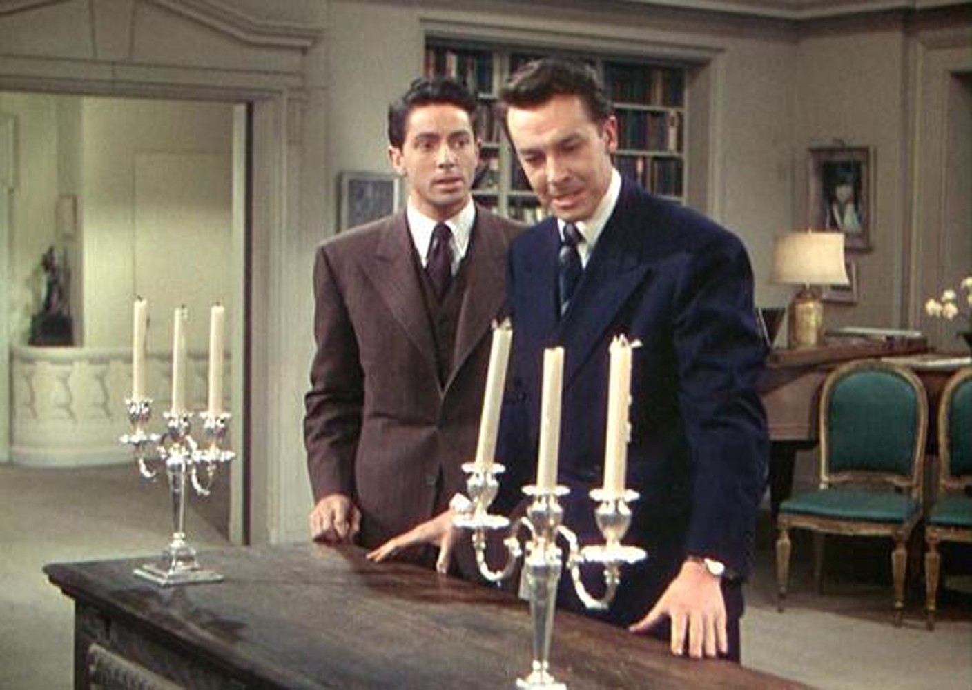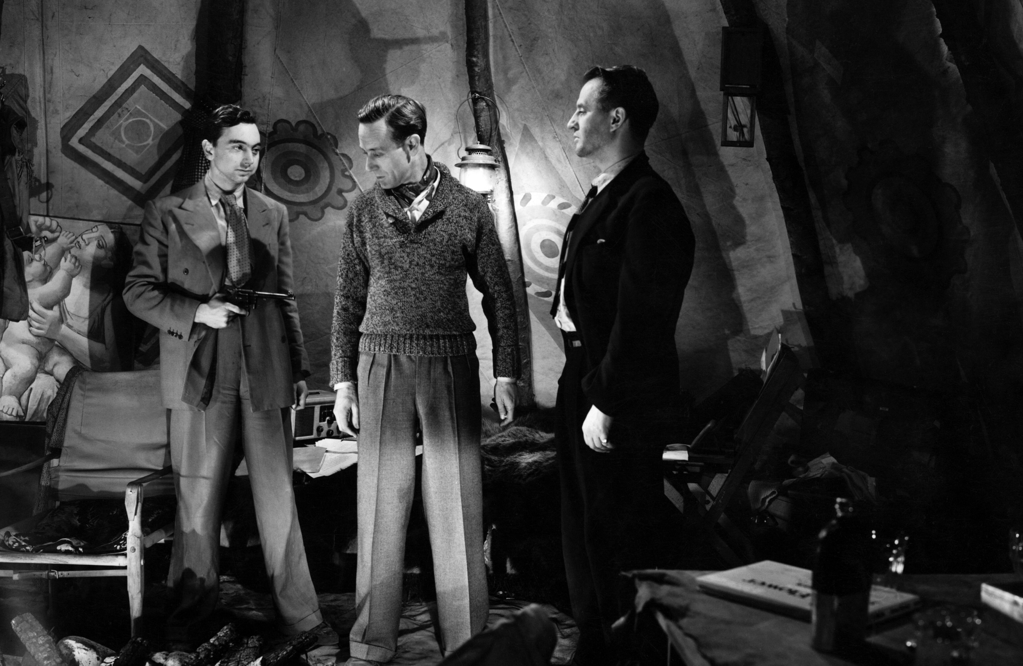 In director Brian Desmond Hurst’s remake of the French classic L’Alibi, this thriller released in 1942, the film stars Margaret Lockwood as a night club hostess who helps Inspector Calas (Hugh Sinclair) catch a killer. Alibi features a few villainous coded gay characters. One is a sinister mindreader named Winkler (Raymond Lovell), and his subservient assistant Fritz (Rodney Ackland). Winkler tells Fritz, “I’m sure you’ll do anything for me.”