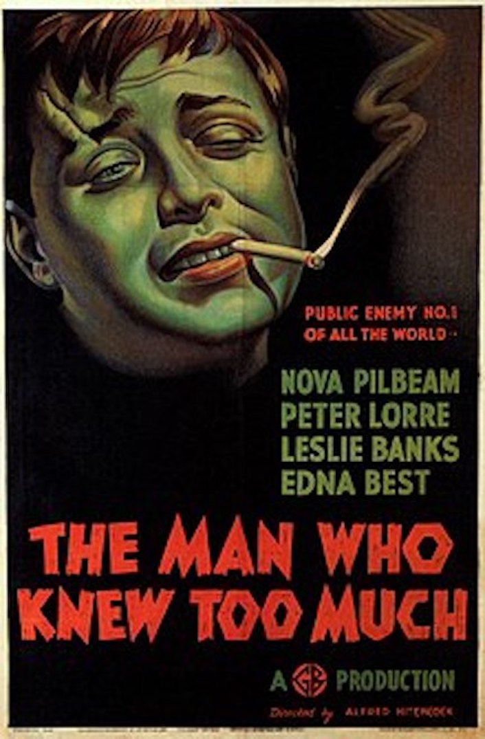 Peter Lorre as Abbott in Alfred Hitchcock’s The Man Who Knew Too Much (1934), co-starring Leslie Banks and Nova Pilbeam. A man and his wife’s daughter have been kidnapped as part of an assassination plot. Peter Lorre plays Abbott, another of Hitchcock and Lorre’s homosexual characters. Hitchcock’s common queer figures, including Peter Lorre, usually play charming, transgressive, and decadent characters.