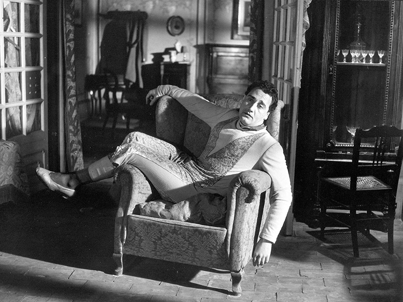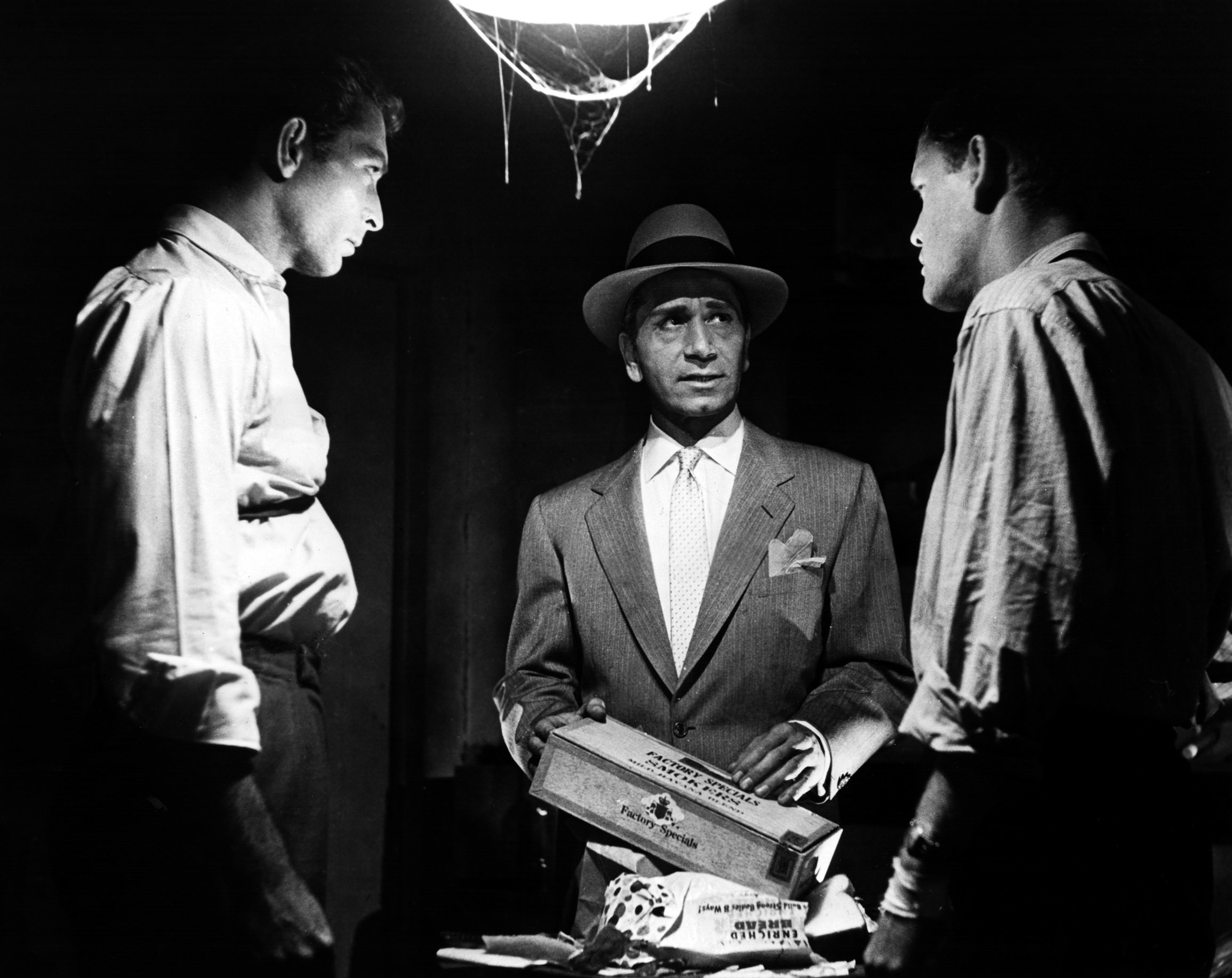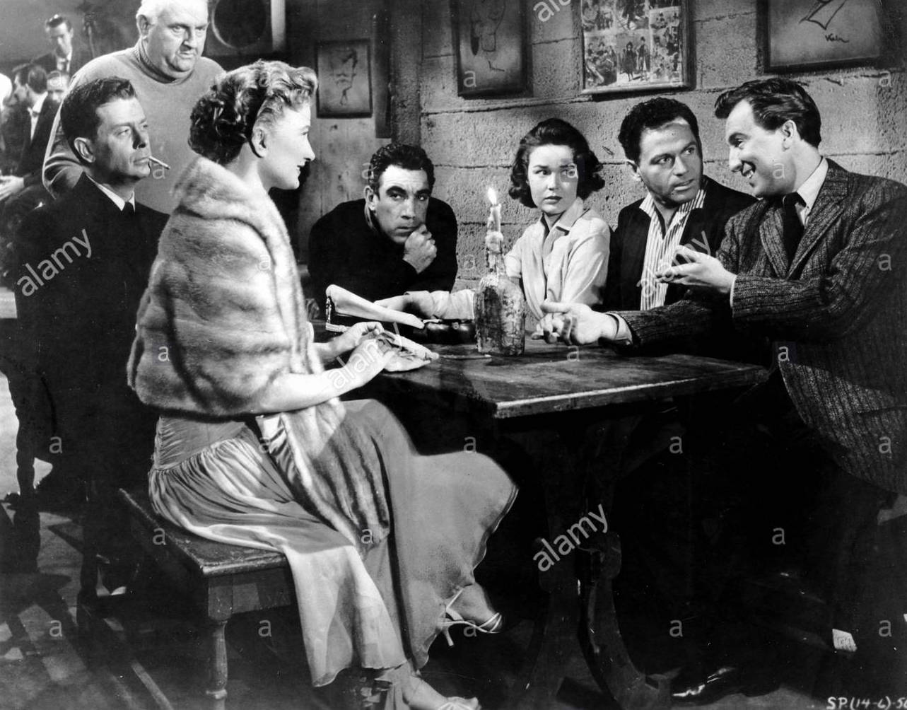 Aram Katcher as Lobero shows no visible interest in women, though, with his financial success and his taste for fine things, he should be surrounded by a flock of lady friends. He aesthetically adores their beauty, but that’s where it seems to end. He calls Tony ( Rory Calhoun) Tonito and stares at him with great affection. He has a similar kind of persona as Peter Lorre, impish and effeminate.