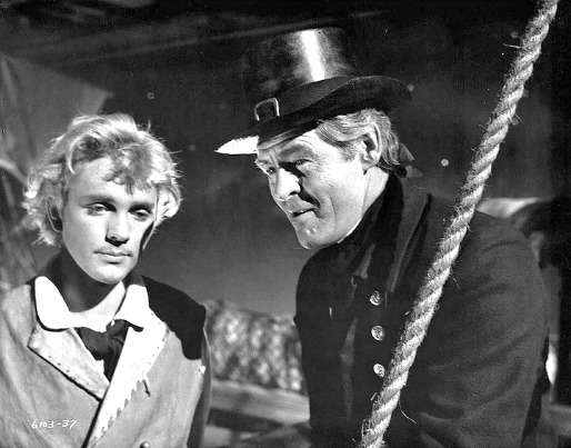 Then, in 1962, Peter Ustinov directed BILLY BUDD, which was based on the novel by Herman Melville. Billy Budd stars Robert Ryan as John Claggart Master of Arms, Peter Ustinov as Capt. Vere and co-stars Melvyn Douglas, Paul Rogers, David McCallum, Ronald Lewis, Niall MacGinnis, and Terence Stamp as Billy Budd. Billy Budd is an innocent, naive seaman in the British Navy in 1797. When the ship’s sadistic master-at-arms is murdered, Billy is accused and tried. Claggart ( Robert Ryan) has a ‘queer’ fixation on Billy. Laura Mulvey terms this fixation as a case of ‘scopophilia,’ which describes the psychological tendency towards deriving aesthetic pleasure from looking at something or someone in terms of masculinity/femininity and subjectivity and objectivity.