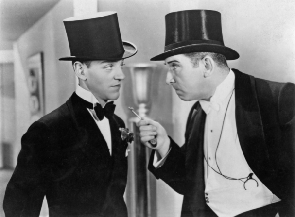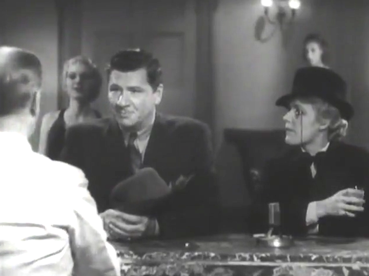 In Over the Moon (1937), Merle Oberon stars as a heiress, Jane Benson, who goes on a spending spree. Along the way, she meets Julia (Zena Dare), who shows Jane the way of the world. Along her screwball journey, there are plenty of ‘queer’ characters to fill out the zany scenarios. At a fashion show in Grosvenor Square, she meets François, a gay model, who flits around and befuddles her boyfriend, Rex Harrison. Then Jane throws a lavish party with the help of Lord Petcliffe (Peter Haddon). ” an interior decorator by profession, a social organizer by choice and, well, never mind, dear, you’ll see.” Haddon is a gay opportunist and a high society queen. He wears fluffy pink slippers and spouts witty grievances like, ” We had a pageant last night. I wore myself to a positive shadow over some dreadful charity.”