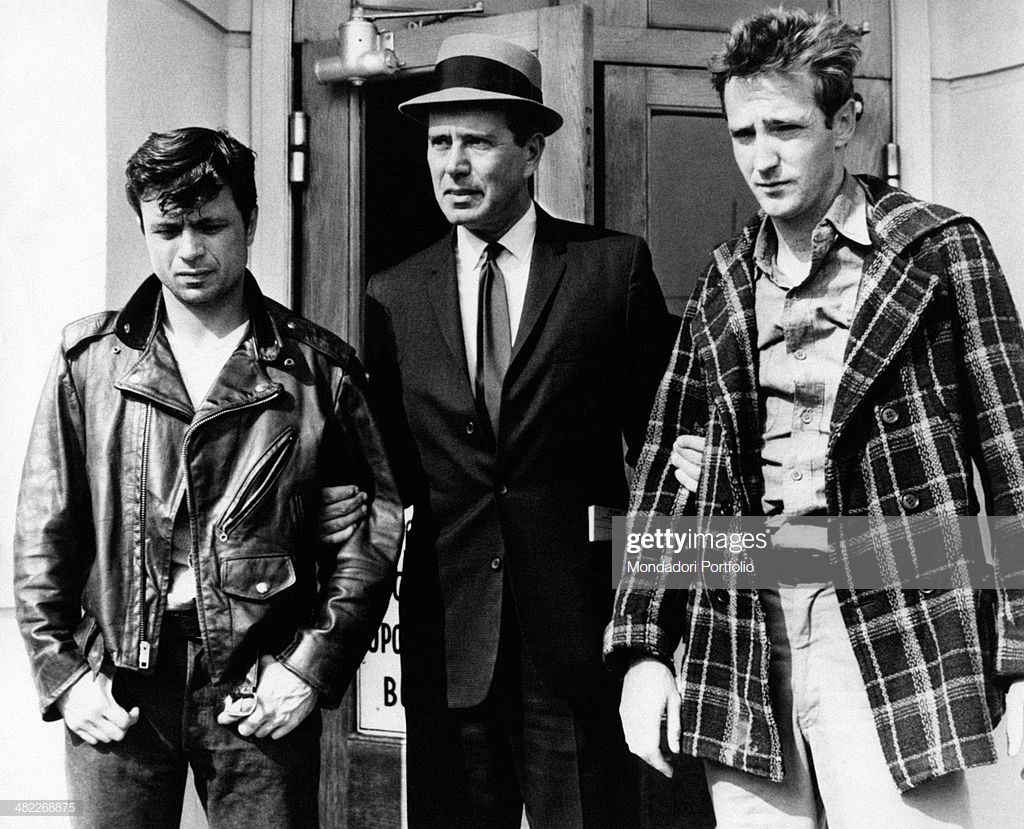 American actors Scott Wilson and Robert Blake, Michael James Vincenzo Gubitosi’s pseudonym, in a scene from the movie In Cold Blood, based on famous American writer Truman Capote’s novel of the same name and directed by American director Richard Brooks, born Ruben Sax; they play the roles of the drifters Richard Eugene ‘Dick’ Hickock and Perry Edward Smith, who are hunted by Alvin Dewey. United States of America, 1967. (Photo by Mondadori Portfolio via Getty Images)