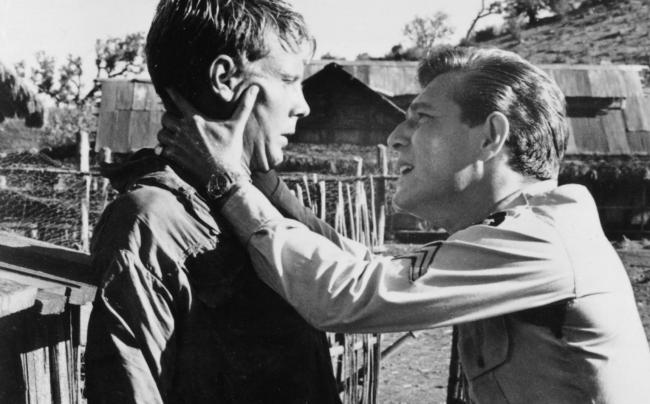 In a more deeply disturbing narrative, director Jack Garfein’s The Strange One (1957) is set in a military boarding school. Jocko De Paris (Ben Gazzara) is a manipulative upperclassman who rules sadistically over the other cadets. The root cause of Jocko’s ambiguous violent schemes is suggested to be his latent homosexuality.