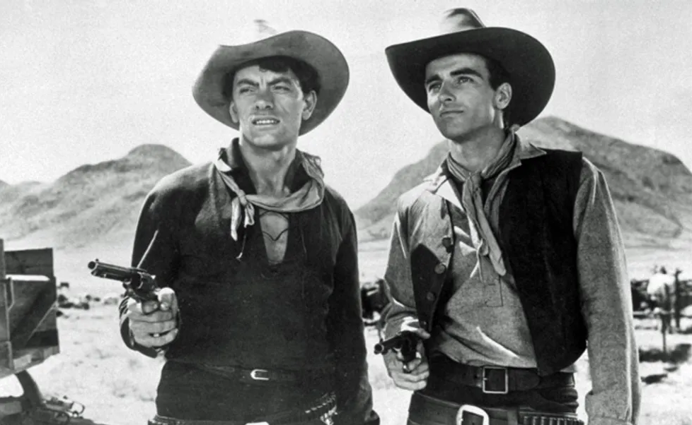 1954 This film was dismissed on its initial release as of little consequence until the likes of Francois Truffaut and Jean Luc Goddard acclaimed it as a classic. Profound beautiful IT has also been called a pro-feminist statement and a gay camp exercise and several other things. Vito Russo’s The Celluloid Closet scriptwriter Suzie Bright says “it’s incredible, if you’re gay audience how you will watch an entire movie, just to see someone wear an outfit to make you think they’re homosexual. “”you’re just sitting there, waiting for Joan Crawford to put on her black cowboy shirt again. ” as she advances downstairs to confront her arch enemy Emma Small (Mercedes McCambridge) Vienna the saloon bar owner in her skin tight chaps with gun holstered at the ready defiance blazing from her black eyes, scarlet lips in a steel jaw is a fitting adversary for the snarling butch lesbian wonderfully played by McCambridge. A truly horse frightening moment in the film Emma covet’s Vienna’s land, besides envying her power over her two handsome lovers, Sterling Hayden in the title role and Scott Brady as gang leader Dancin’ Kid. Frightening the Horses: Eric Braun