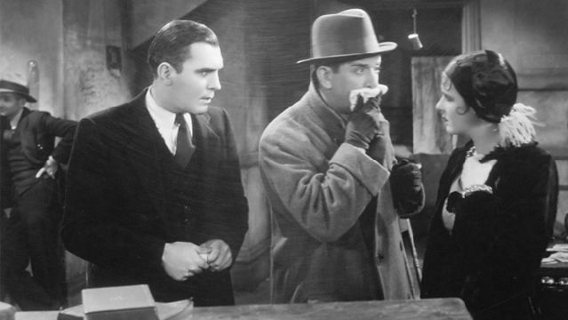 The police find Norah Baring, playing actress Diana Baring, by the body of her murdered friend. Diana is found guilty and is condemned to hang. But a jury member, Herbert Marshall, as Sir John Menier, suspects that Diana’s boyfriend, an acrobat, is wearing a dress.