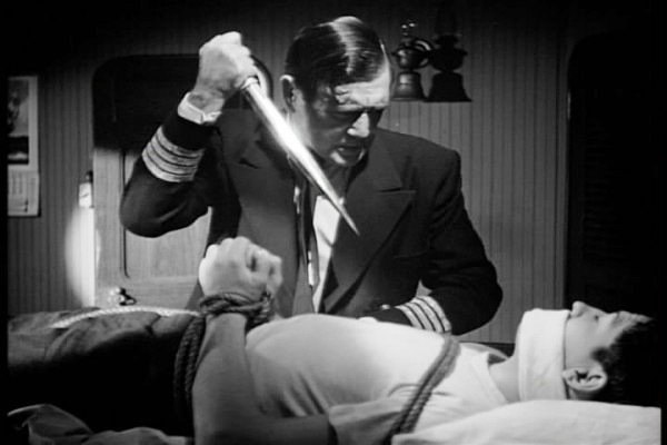 The 49th Parallel (1941) directed by Michael Powell and Emeric Pressburger stars Eric Portman as Lieutenant Hirth, a role intended for Michael Redgrave. The story involves a Nazi U-Boat Commander and his men who are trying to get to the border after they become stranded in Canada. During a time of war, various characters cannot do anything to change the course of events, even with the best of intentions. Laurence Olivier plays a trapper, and Anton Walbrook plays Peter, a kind spiritual idealist. Walbrook always seems to manifest a quality of alienation, and he has an intimate moment with Niall MacGinnis (another often coded gay figure, consider Night of the Demon), who plays a Nazi with a delicate touch. The film also stars Leslie Howard as novelist and aesthete Philip Armstrong Scott. He is surrounded by paintings of Picasso and Matisse and makes what could be interpreted as a sexual advance toward John Chandos, who plays Lohrmann, one of Lieutenant Ernst Hirth’s (Eric Portman) men who might actually be in love with Hirth. Scott (Howard) is a loner who shows no use for women and asks one of the Nazis while gazing at him intensely, “Interested?” Interested in what, fishing? Powell and Pressburger seemed to have had a preoccupation with the pathology of sexual frustration.