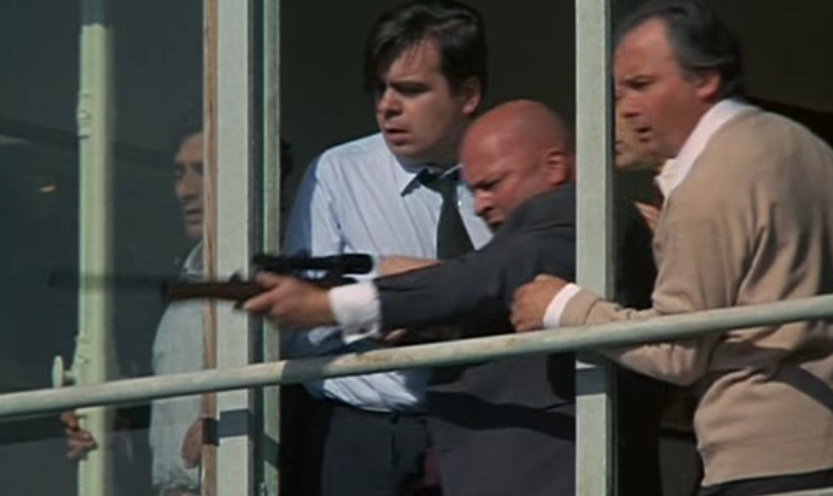 Halfway through the film, the momentum of Julie's plan is hindered first with the wrongful arrest of Miss Becker, and the fourth intended victim Delvaux (Daniel Boulanger) a shady junk car dealer, who is arrested before she can shoot him. He’s sent to prison for selling stolen cars. Delvaux is the most unlikable of the five. He is a vulgar brute, who shown in flashback is actually the one who shot David.