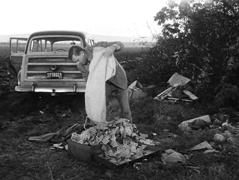By the time Johnny gets there, he finds George bloodied, stumbling onto Johnny’s car for a brief moment, then gets into his car across the street, and heads home. Johnny’s perfect plan has gone horribly wrong, he had no choice but to save himself and the money, so he drives off.