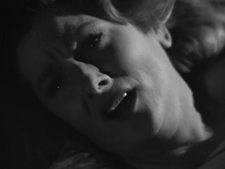 Hayes places the nightmare that Alice relates to John later on in the story and repositions it at the beginning of the episode, which already triggers an immediate sense of apprehension and augury. Russell’s camerawork creates an effect shot of her frightened face that is superimposed over her frozen in bed. It is a waking nightmare.