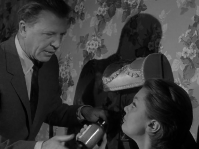Russell seems to magically capture a shadowland, a borderland where the dreamworld and the lucid world lose touch with each other as Alice tries to make sense of her intangible claustrophobia. Lyn Murray’s soul-stirring score runs like a ghost haunting the halls of the episode, with a melody, a motif you’ll hear in several of the series episodes, that only augments the story’s emotional understanding of the situation.