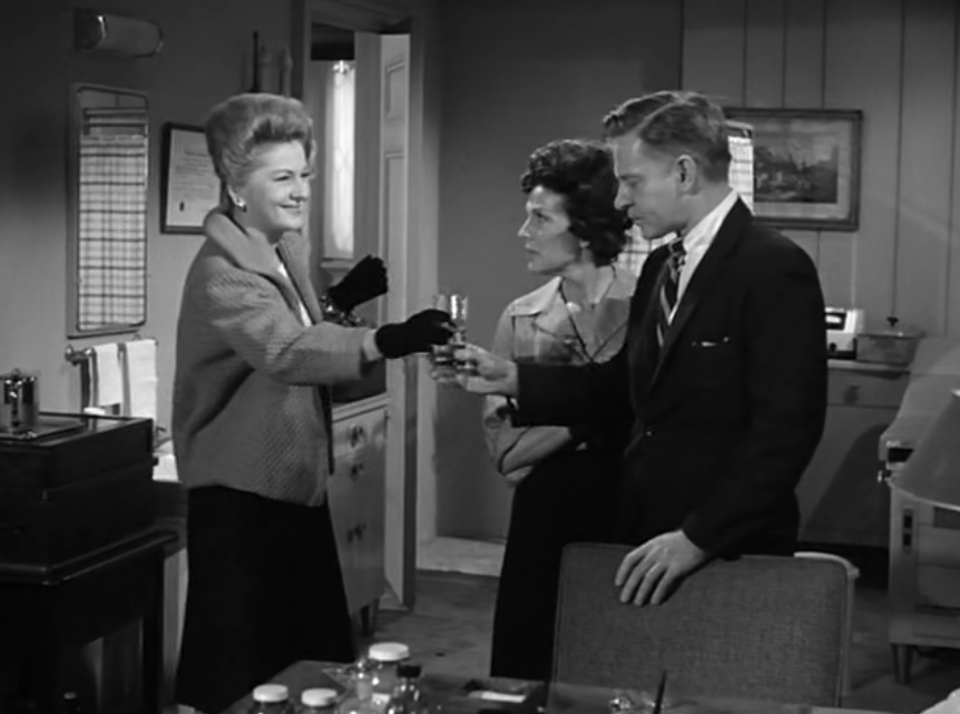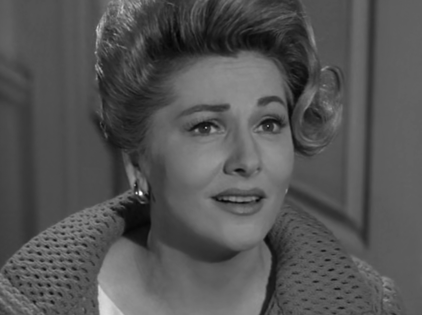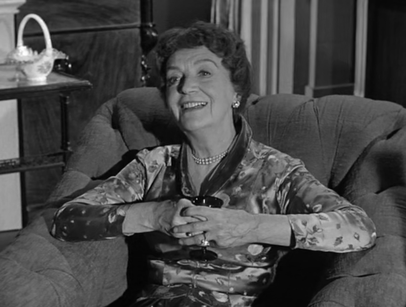 She made her foray into television in the early 1950s in such shows as The Chevrolet Tele-Theatre, Kraft Theatre, Armstrong Circle Theatre, Suspense, Climax!, Studio 57, Playhouse 90, and in 8 episodes of Robert Montgomery Presents. She was not only cast as Reverend Mother in Final Vow for The Alfred Hitchcock Hour she plays Sister Marie Theresa in season 1 episode The Dark Pool. And she plays John William’s shrewish wife in Alfred Hitchcock Presents, Back for Christmas.