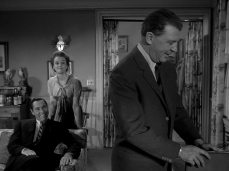 John’s friend Mr. Norton is a very wealthy businessman, and John would like him to be a new client. That’s why he asked him over for dinner and to play cards, but he leaves early. Norton says to Alice after she puts John down about his terrible memory, That’s very human. He comments, in a subtle way, that he finds her off-putting. “You’re a very unusual person.” “Heavens, Mr. Norton, you mustn’t flatter me, I’m a very simple person.” “On no, my dear, anything but simple.”