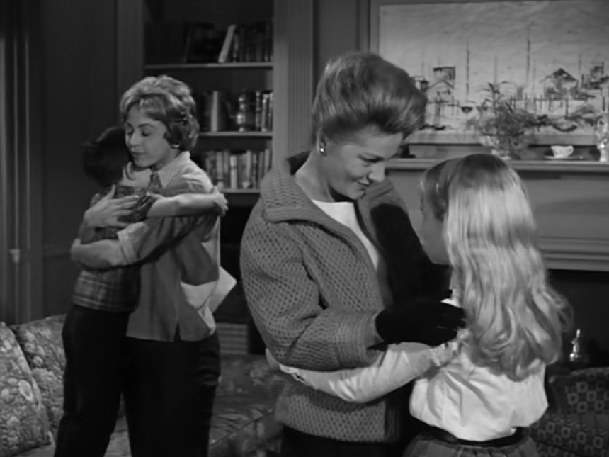 Madge’s children come home. She tells Alice not to encourage her daughter Betty (Susan Gordon), who tells her she wrote a composition. “I prayed for you to get well,” and that the composition was about what she wanted to be when she grew up. “And I said a missionary.” ”Oh, what a nice ambition.” “I’m going to go to the islands and I’ll convert all the natives. “