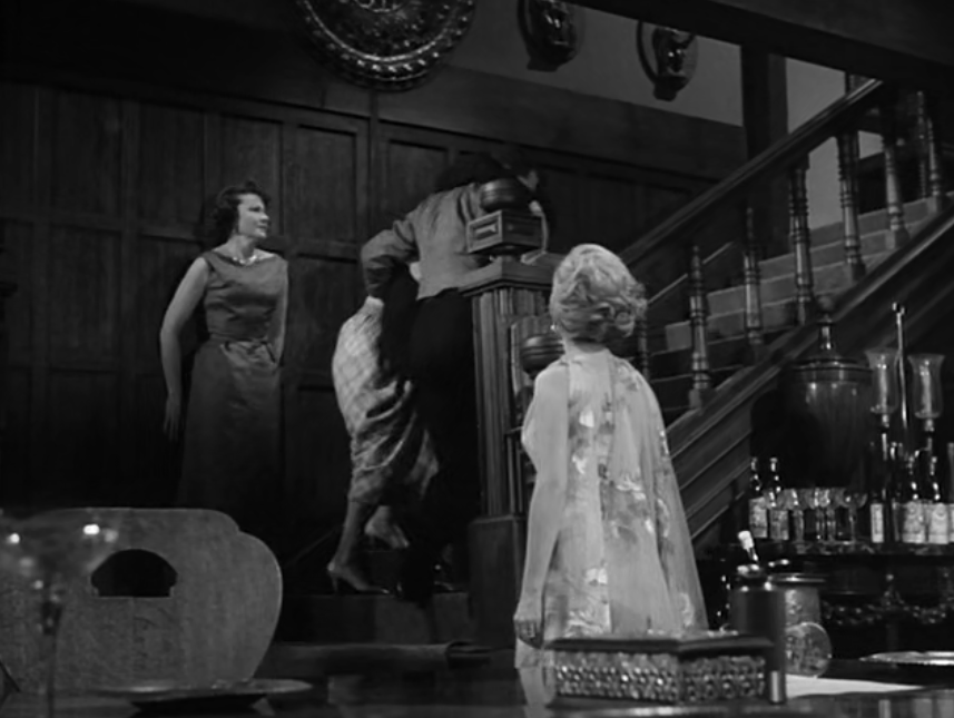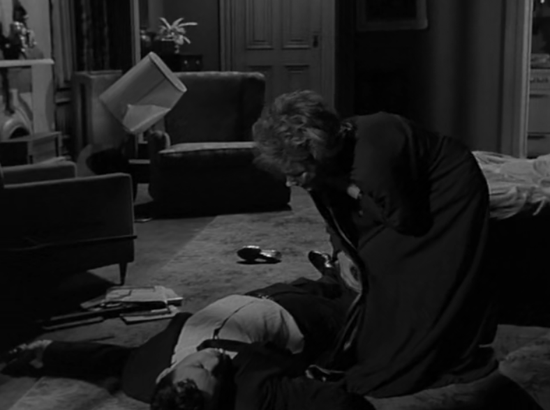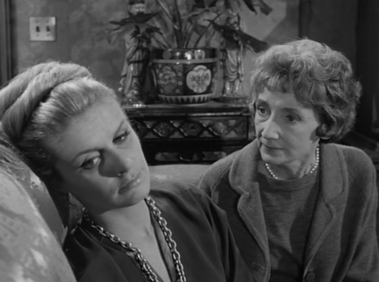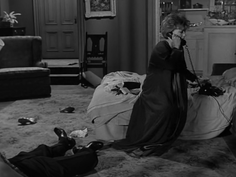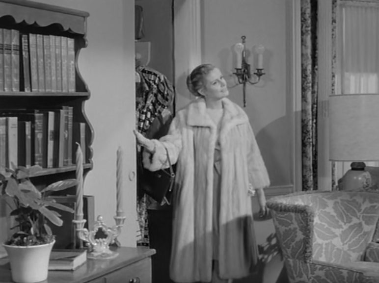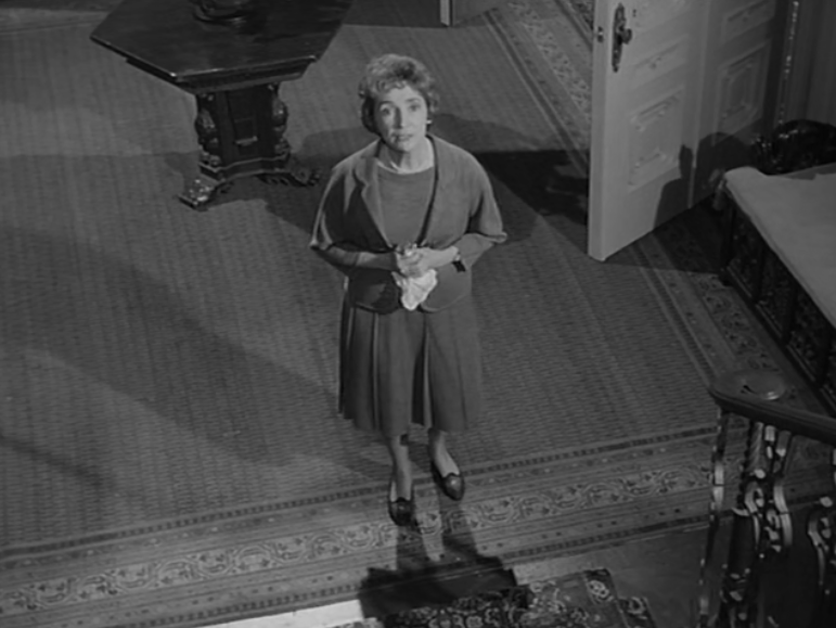 The episode opens with Tchaikovsky blasting on the record player. Rowlands is on the phone trying to make arrangements and going over the minutia of life, taking care of the house and her two little girls, who are a distraction running around. Nancy Kelly walks in on the din of the crazy life of an upper-middle-class housewife.