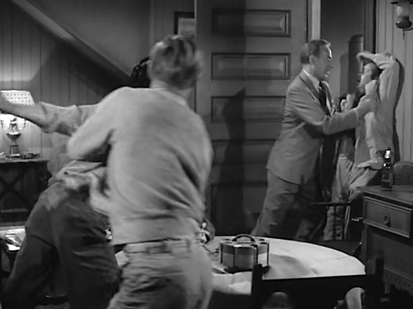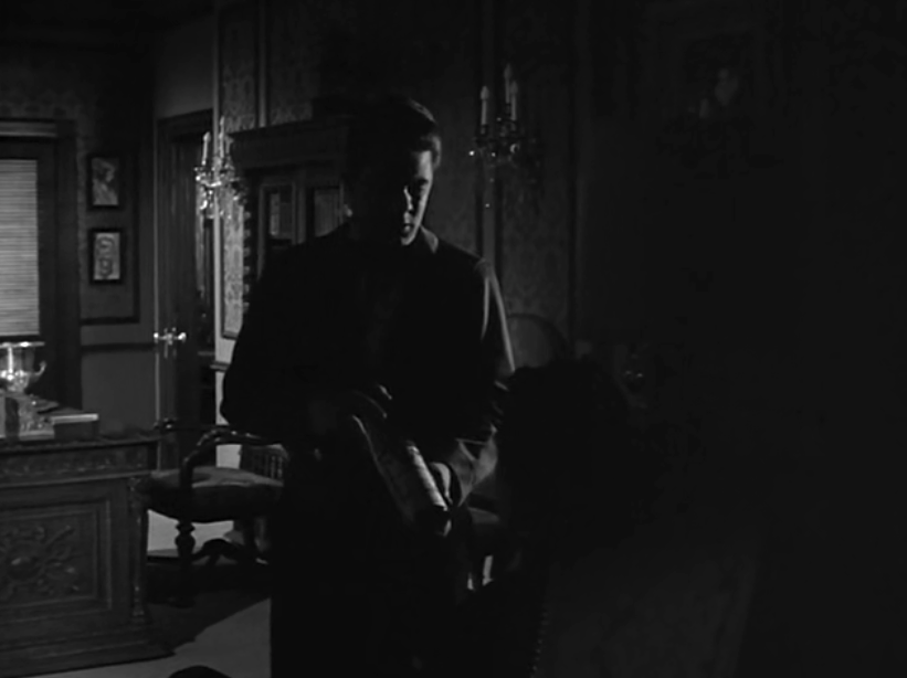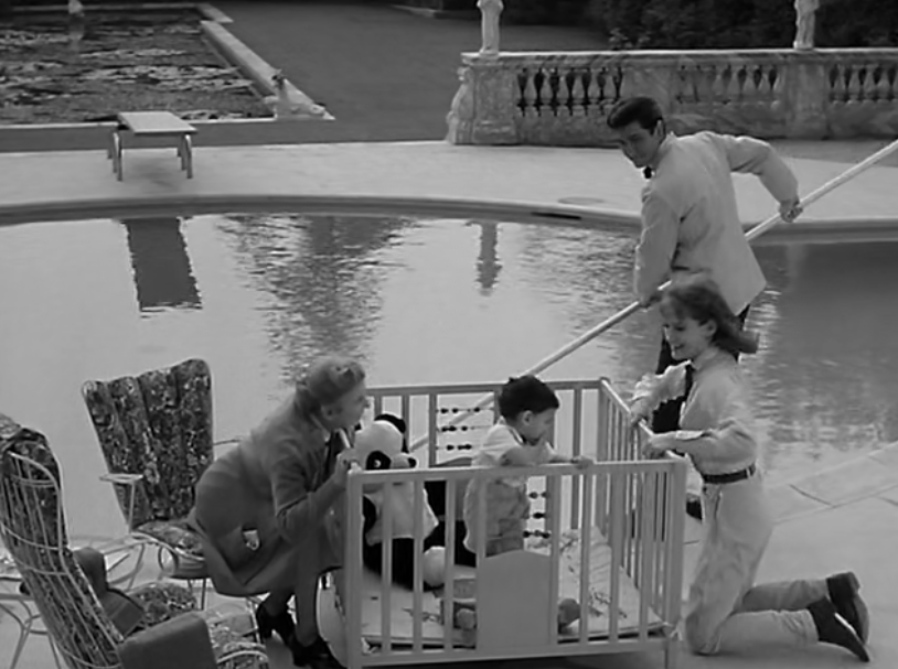 When the curious Vera Brandon shows up looking for a quiet room to rent in order to finish her thesis, she spots Louise’s little boy Lonnie and the camera catches her fixating on him in his high chair. It strikes us as well, that little Lonnie has dark curly hair, looking more like he’d be the saturnine Vera Brandon’s child than the polished blonde Louise.