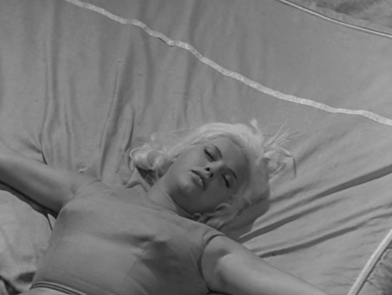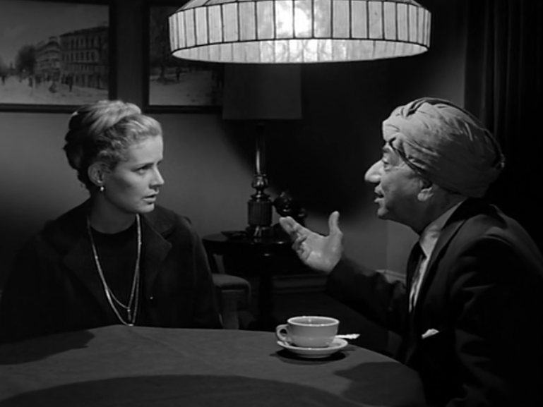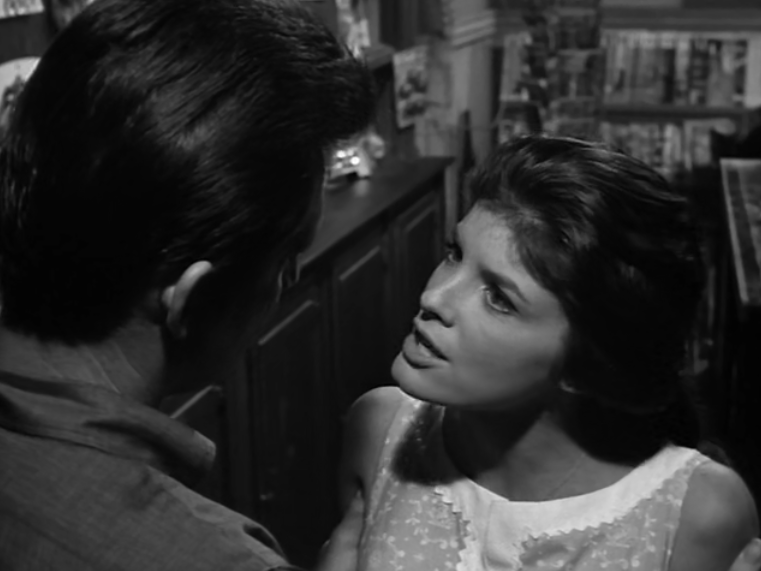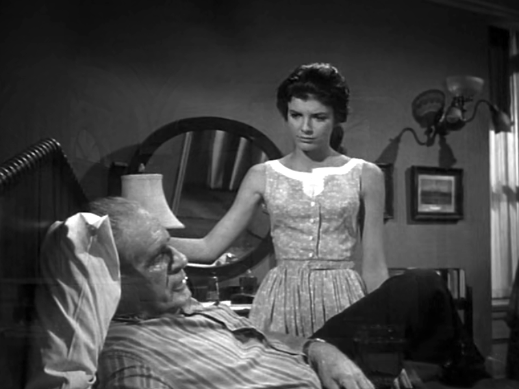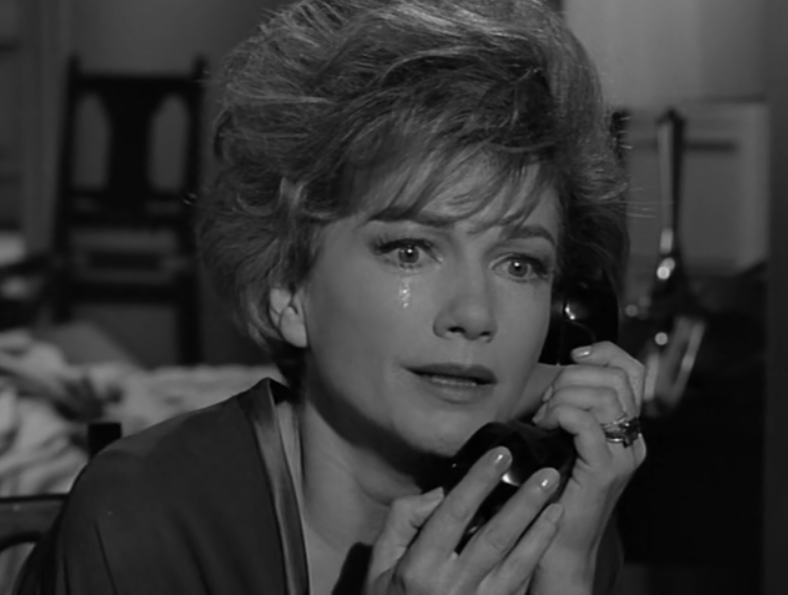 Hyland established herself primarily in the realm of television from 1955 to 1977. Apart from her appearance in this episode of “The Alfred Hitchcock Hour,” she also graced the screens of “The Twilight Zone” in a particularly haunting episode, Spur of the Moment, which features her older black-cloaked doppelganger riding a horse, pursuing her screaming ‘Anne’. It is poetic ad nightmarish and Hyland seems to grasp haunting scenarios quite well.