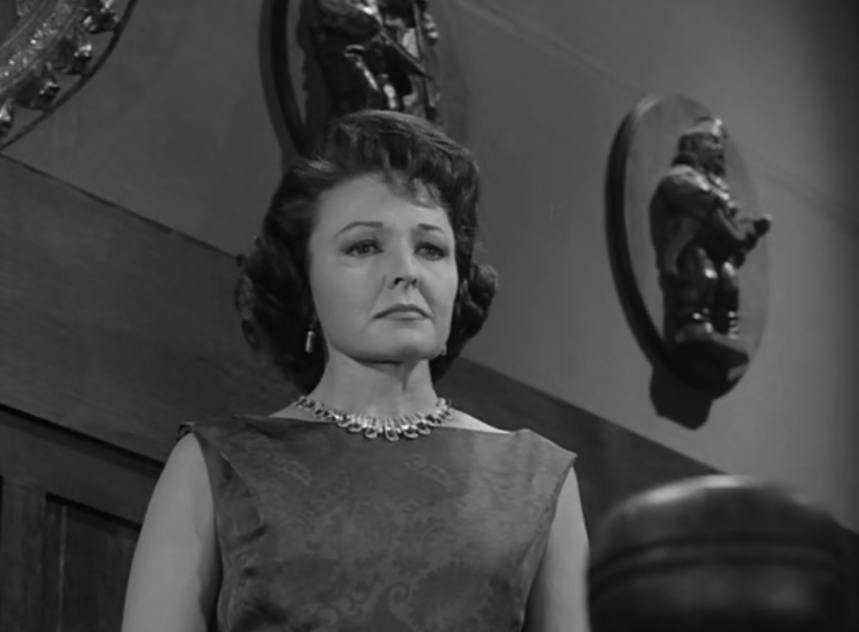 Gig Young’s defense attorney (Anthony Franciosa) sums up Mrs. Ellis as an unmitigated monster. A film critic referred to her as “a cruel and voracious she-wolf in deceptively virtuous sheep’s clothing.”
